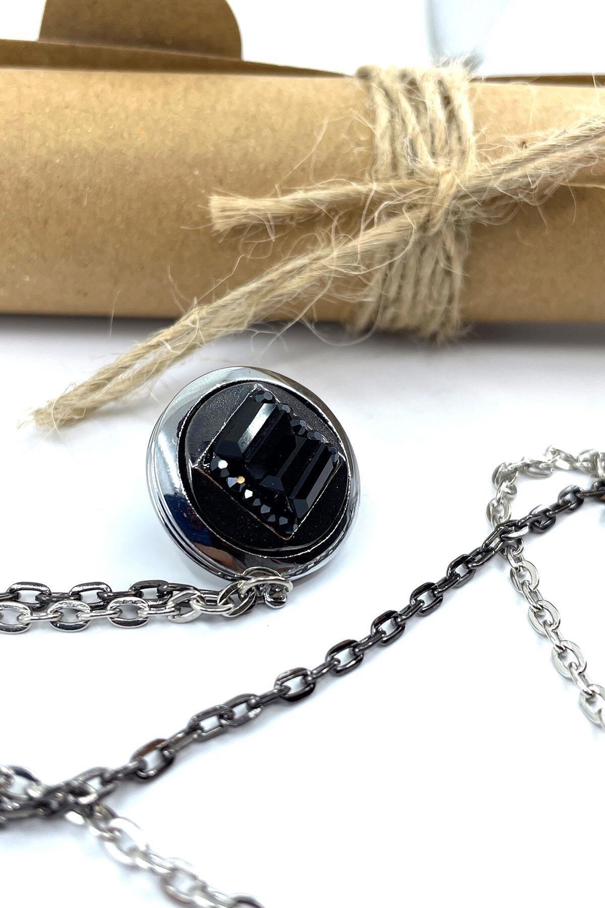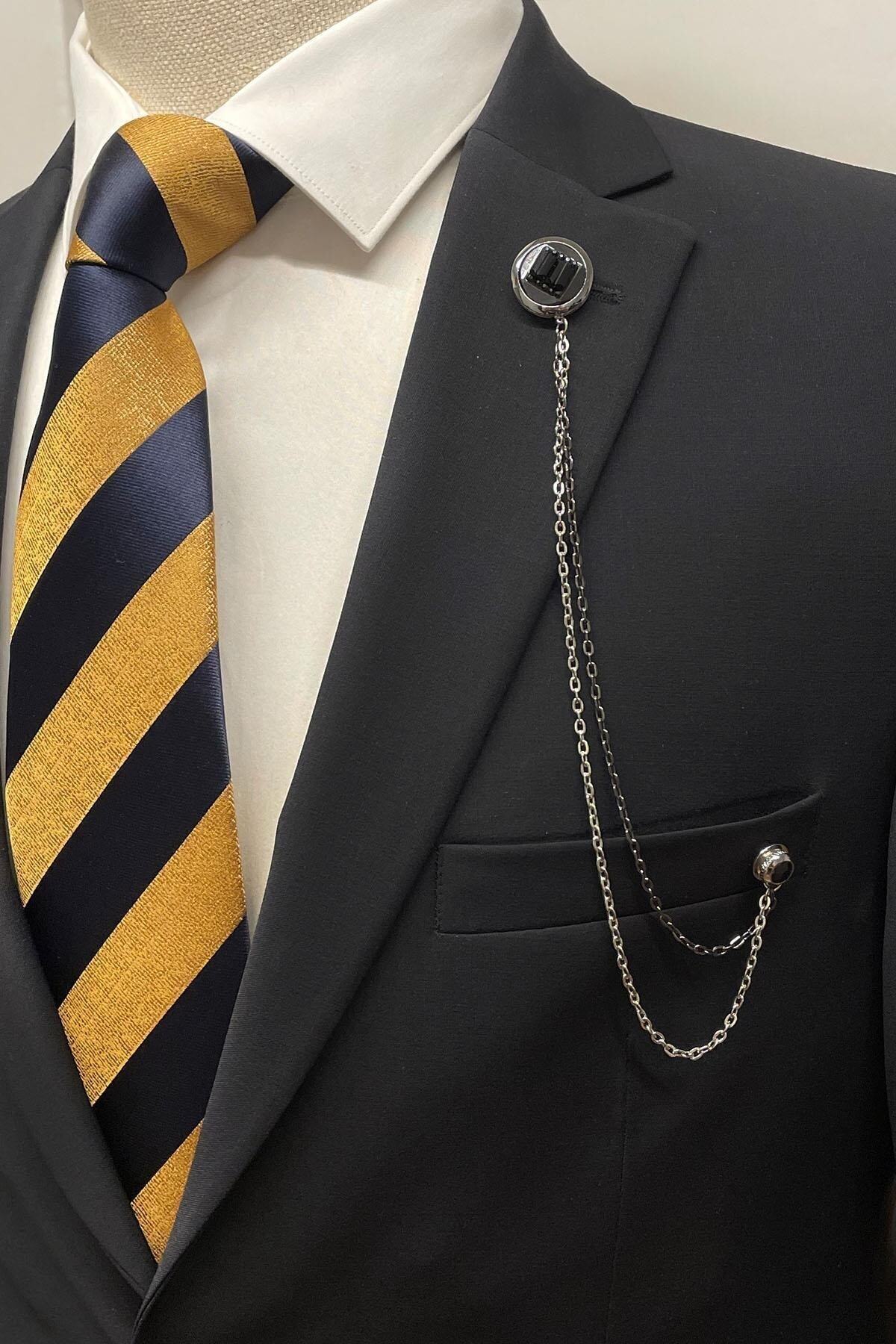 سنجاق یقه کتی سنگی مشکی نقرهای رنگ YI386 مردانه رنگارنگ | Kravatkolik KRVT8690002233301