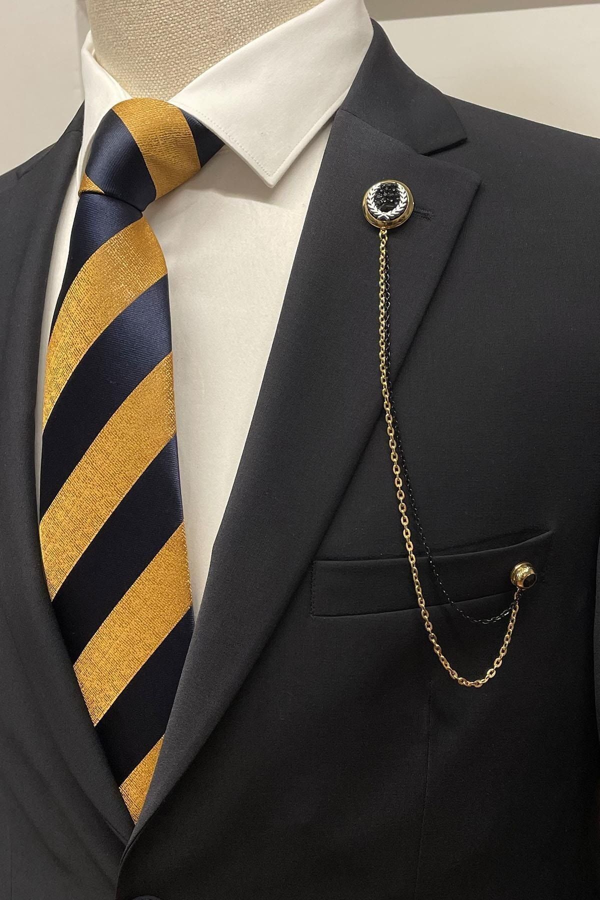 سنجاق یقه کت زنجیری مشکی طرح برگ بو طلایی رنگ Yı399 مردانه هندسی | Kravatkolik KRVT8690002233314