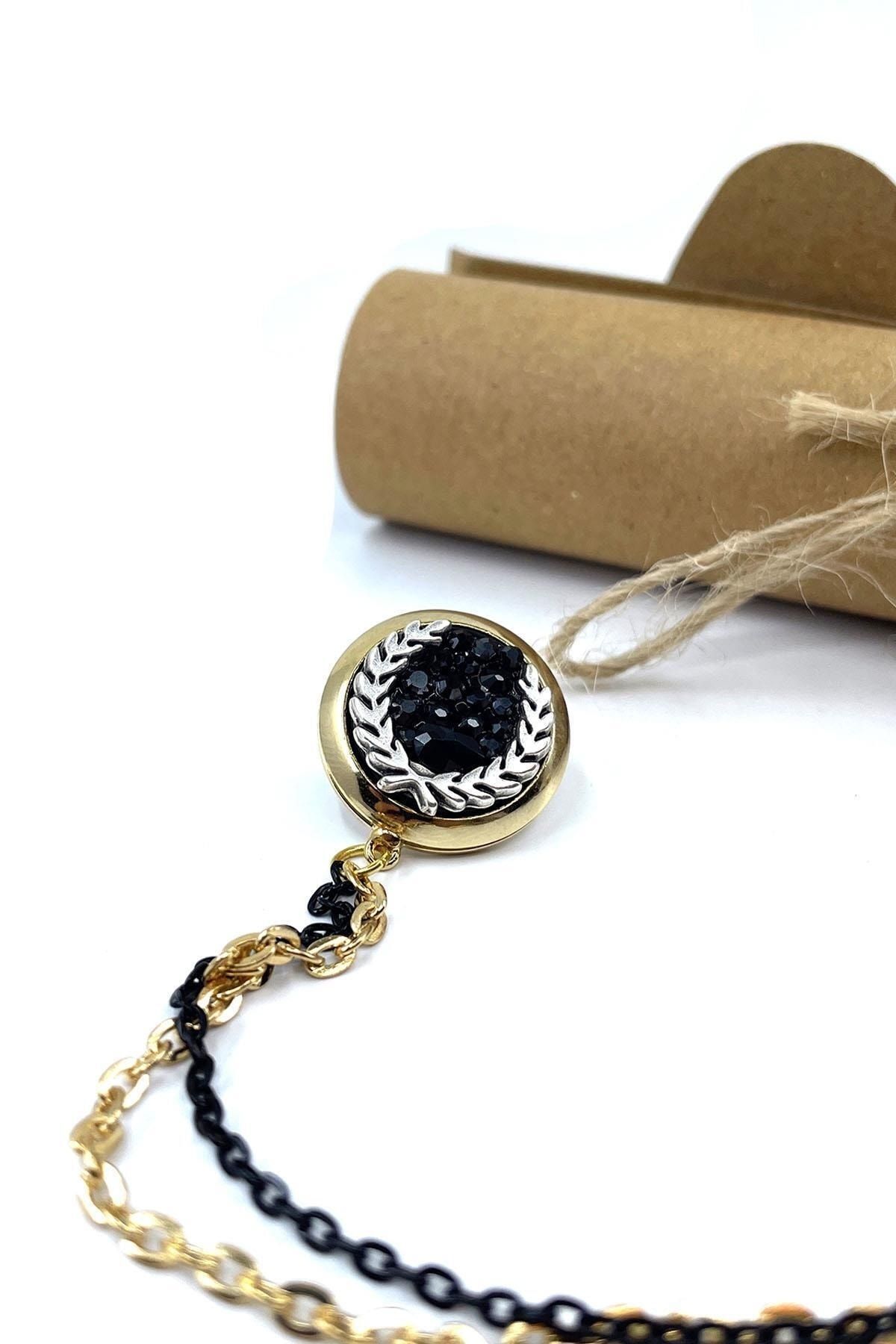 خرید اینترنتی سنجاق یقه کت زنجیری مشکی طرح برگ بو طلایی رنگ Yı399 برند Kravatkolik اورجینال از Kravatkolik نمایندگی ترکیه