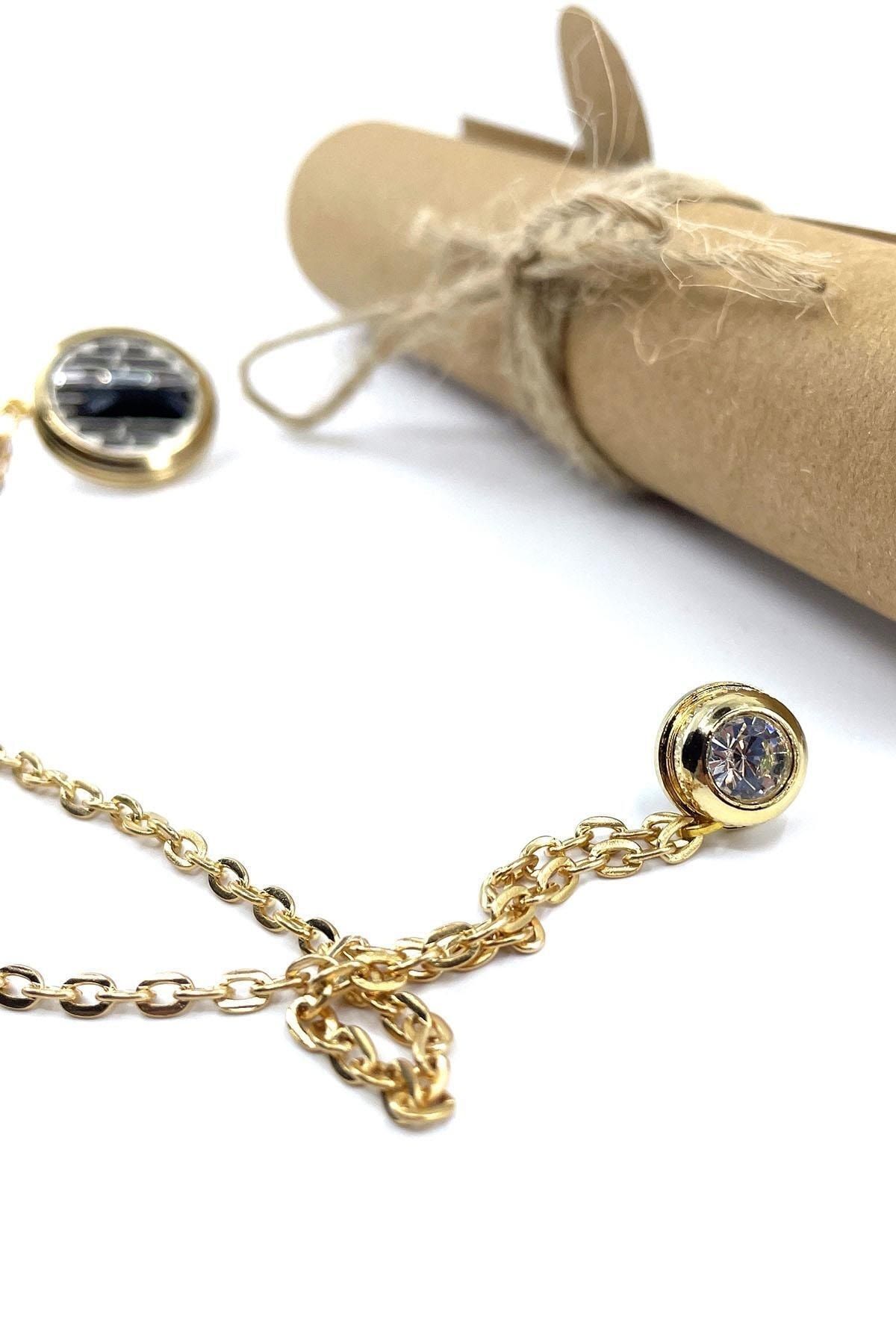 خرید اینترنتی سنجاق سینه زنجیری تزیین شده با سنگ طلایی رنگ سفید YI400 برند Kravatkolik اورجینال از Kravatkolik نمایندگی ترکیه