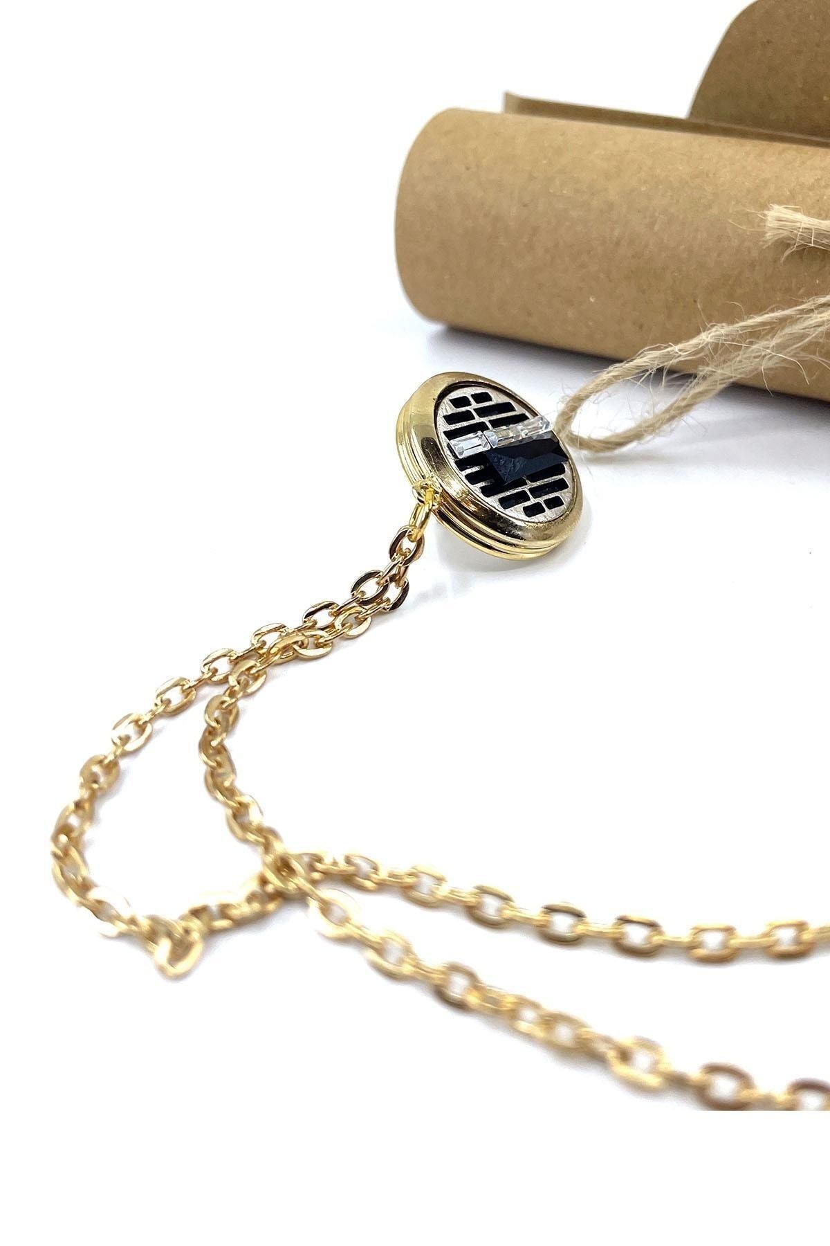 سنجاق سینه زنجیری تزیین شده با سنگ طلایی رنگ سفید YI400 مردانه | Kravatkolik KRVT8690002233315