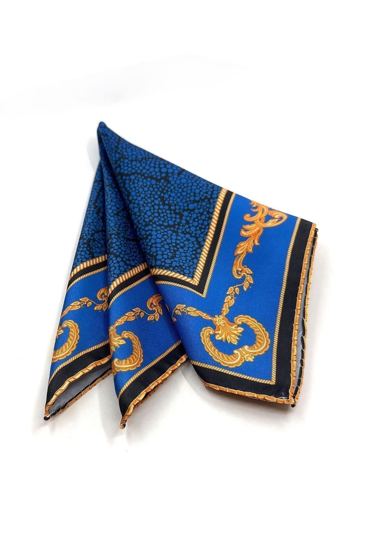 – این دستمال جیبی مردانه، با طرحهای سرمهای و زرد خود، ظرافت و زیبایی را ارائه میدهد و به راحتی با هر لباسی ست میشود.