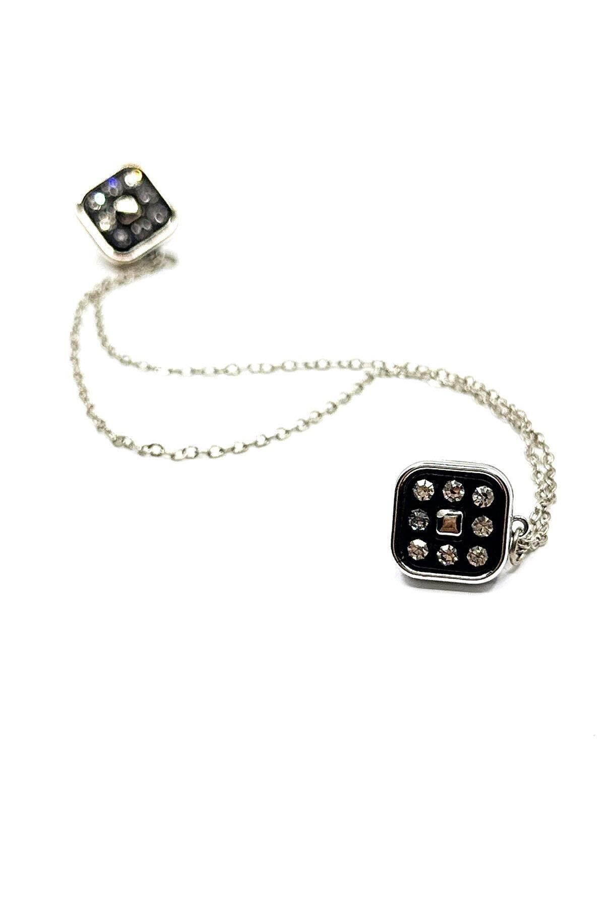 خرید اینترنتی زنجیر یقه پیراهنی نقرهای مشکی با سنگهای رنگی GI231 برند Kravatkolik اورجینال از Kravatkolik نمایندگی ترکیه