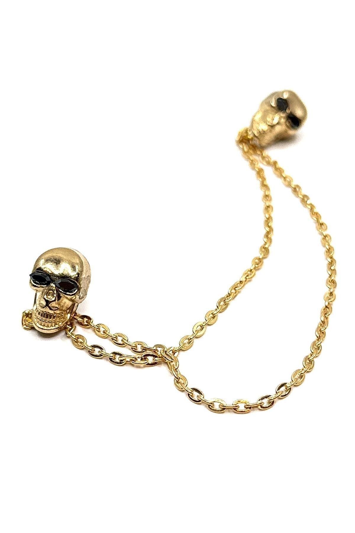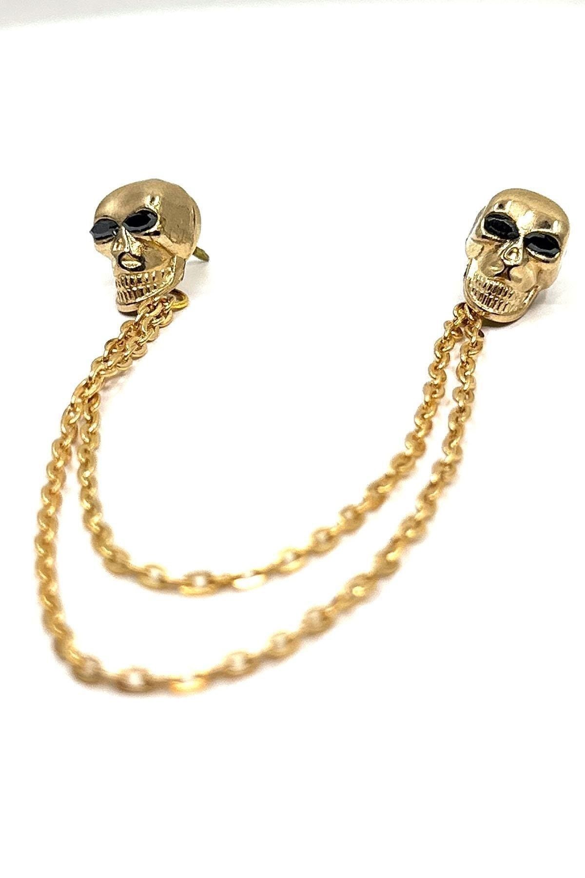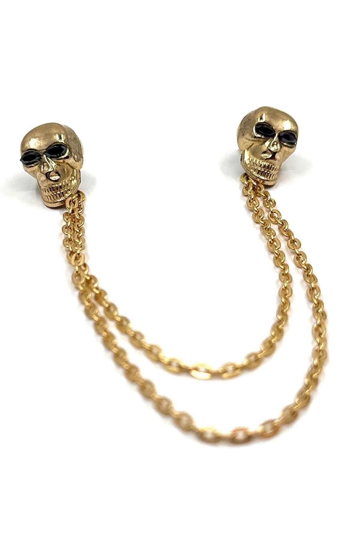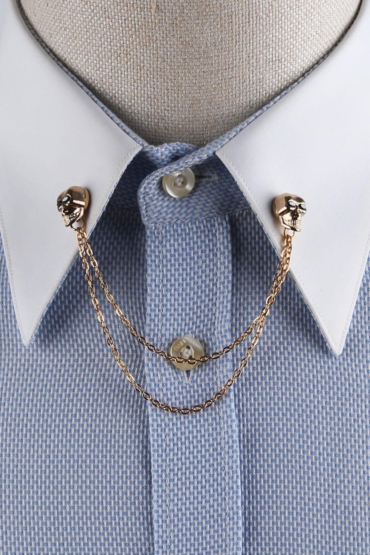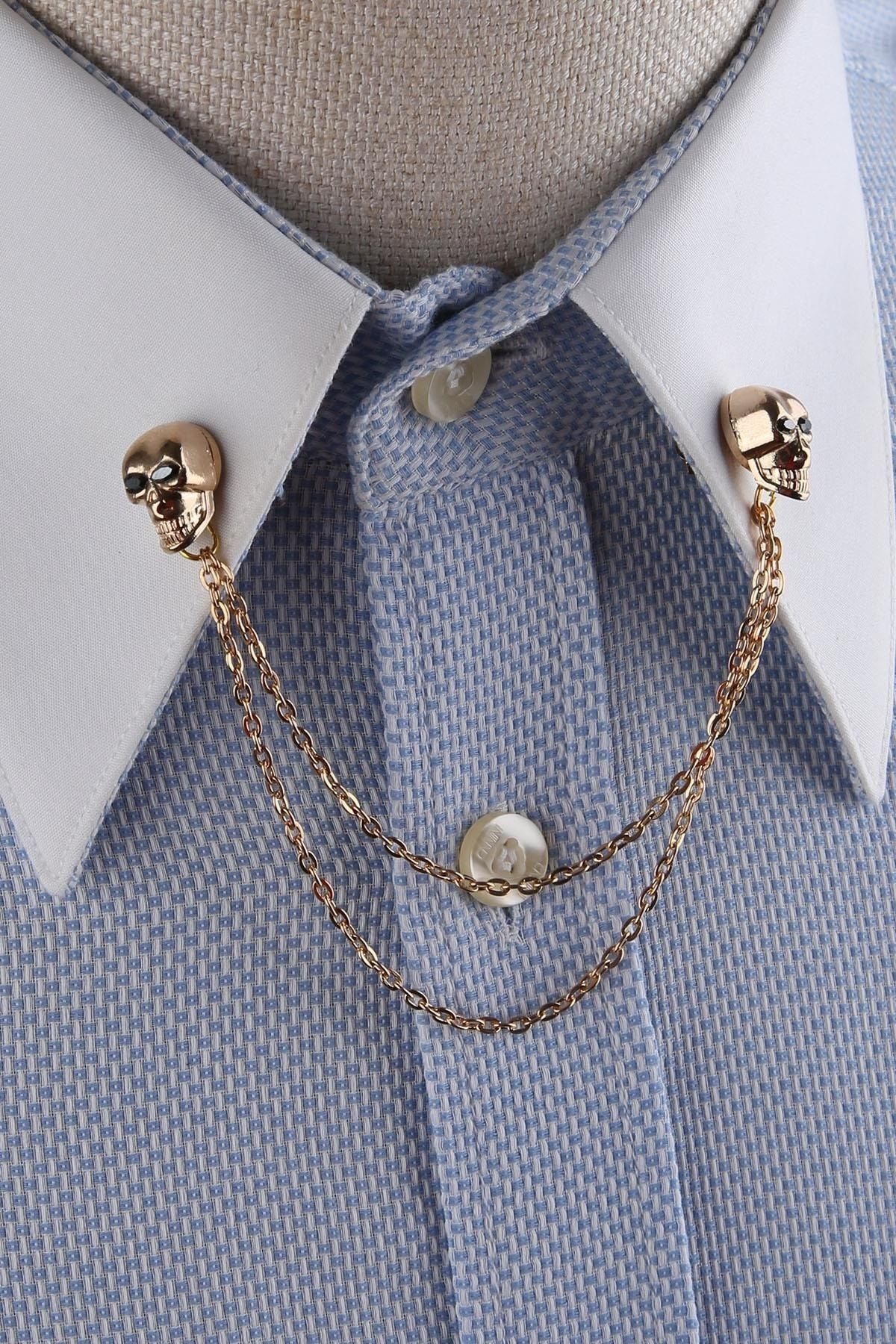 زنجیر یقه پیراهن طرح جمجمه طلایی GI236 مردانه | Kravatkolik KRVT8690002234547