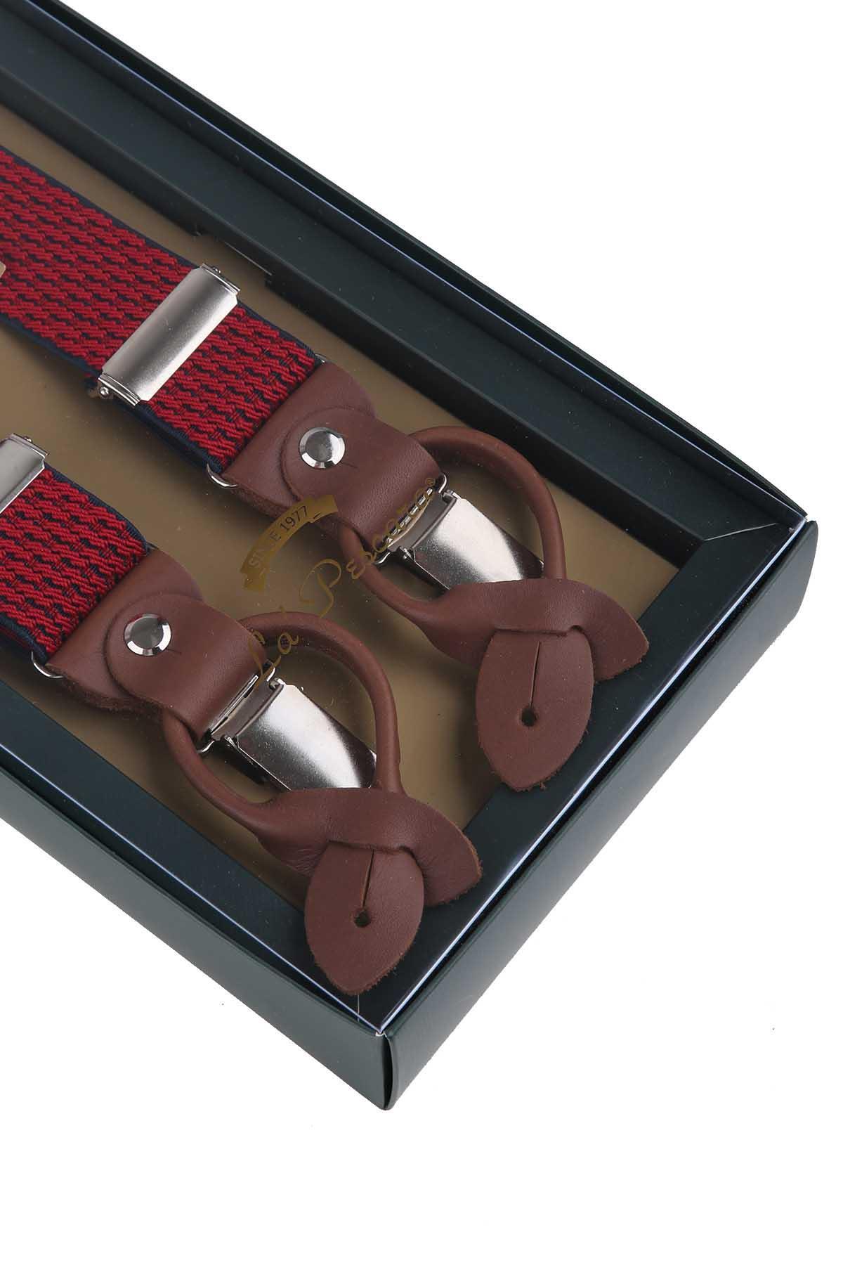 خرید اینترنتی بند شلوار جاکارد چرم قرمز با دکمههای جادار PAN191 برند Kravatkolik اورجینال از Kravatkolik نمایندگی ترکیه