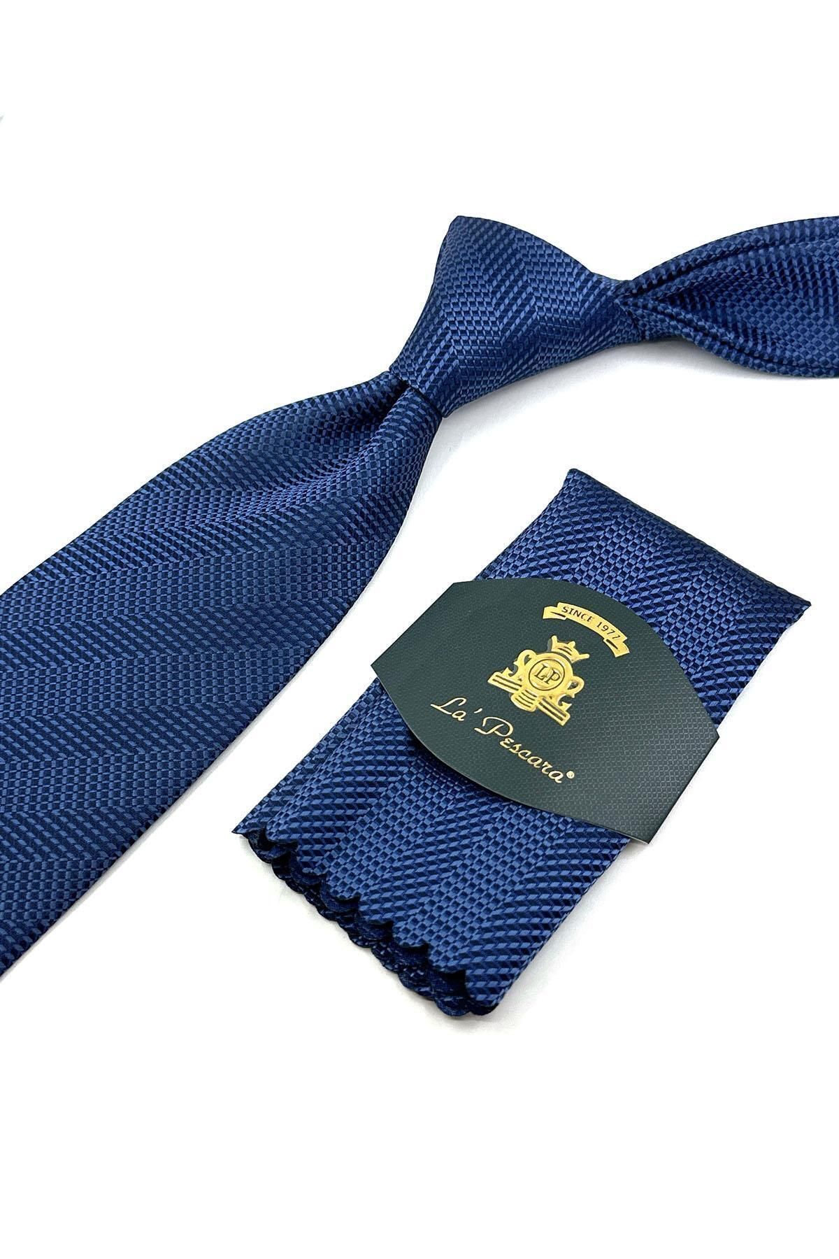 خرید اینترنتی کراوات کلاسیک با طرح راه راه آبی و دستمال جیبی KK12060 برند Kravatkolik اورجینال از Kravatkolik نمایندگی ترکیه