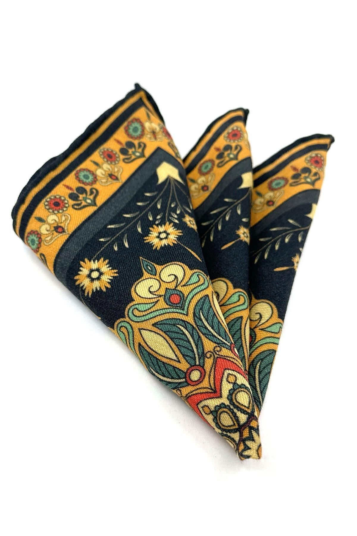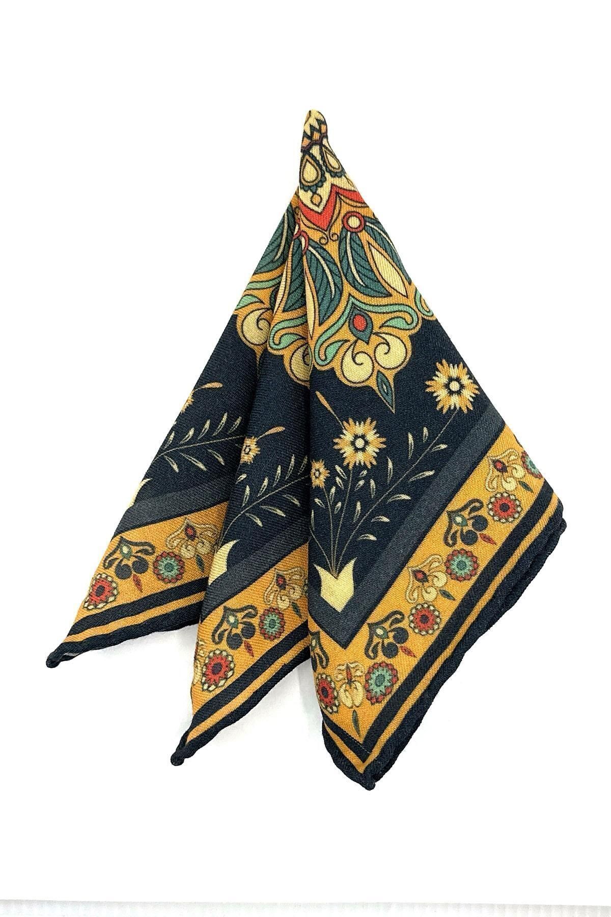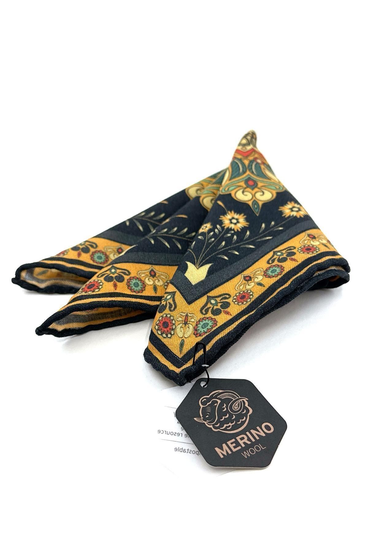 خرید اینترنتی دستمال جیبی پشمی ایتالیایی دست دوز زرد سرمهای WL10 برند Kravatkolik اورجینال از Kravatkolik نمایندگی ترکیه