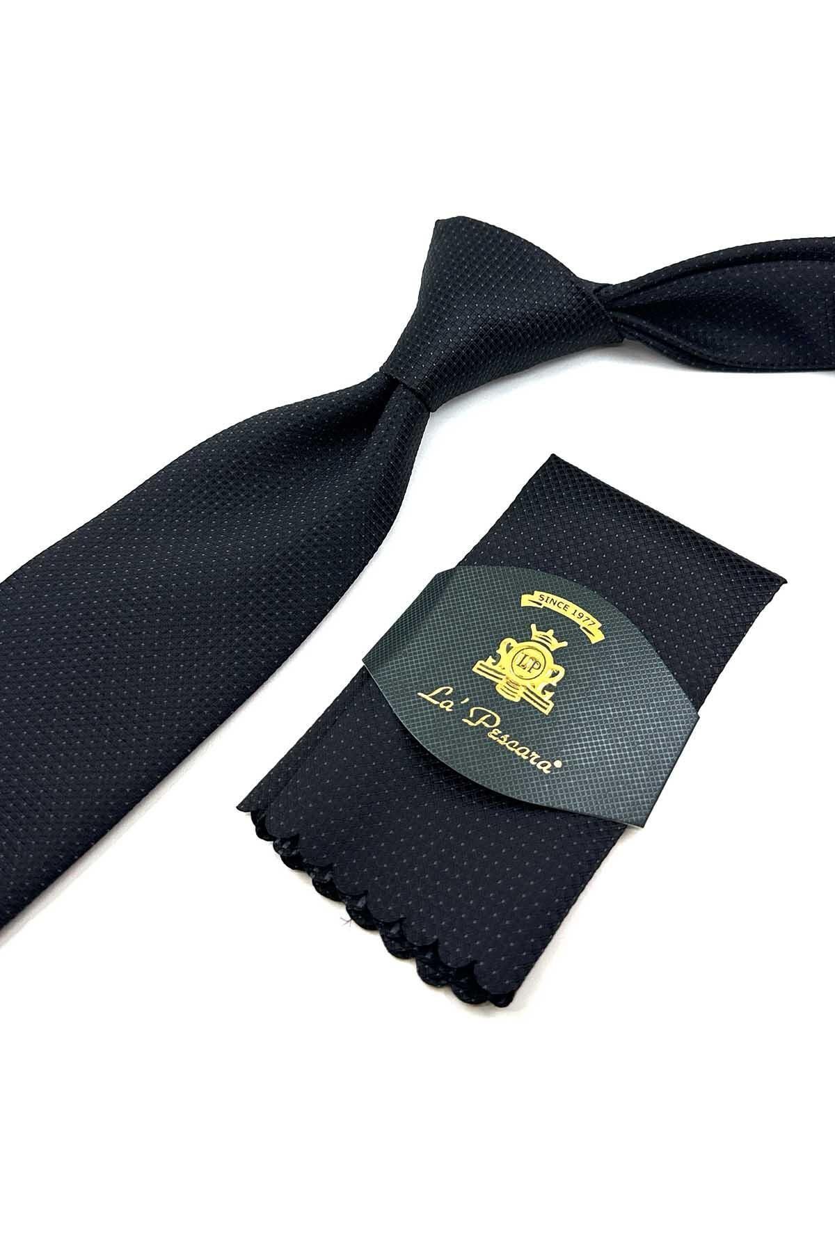 خرید اینترنتی کراوات کلاسیک با طرح خالدار مشکی و دستمال جیبی KK12339 برند Kravatkolik اورجینال از Kravatkolik نمایندگی ترکیه