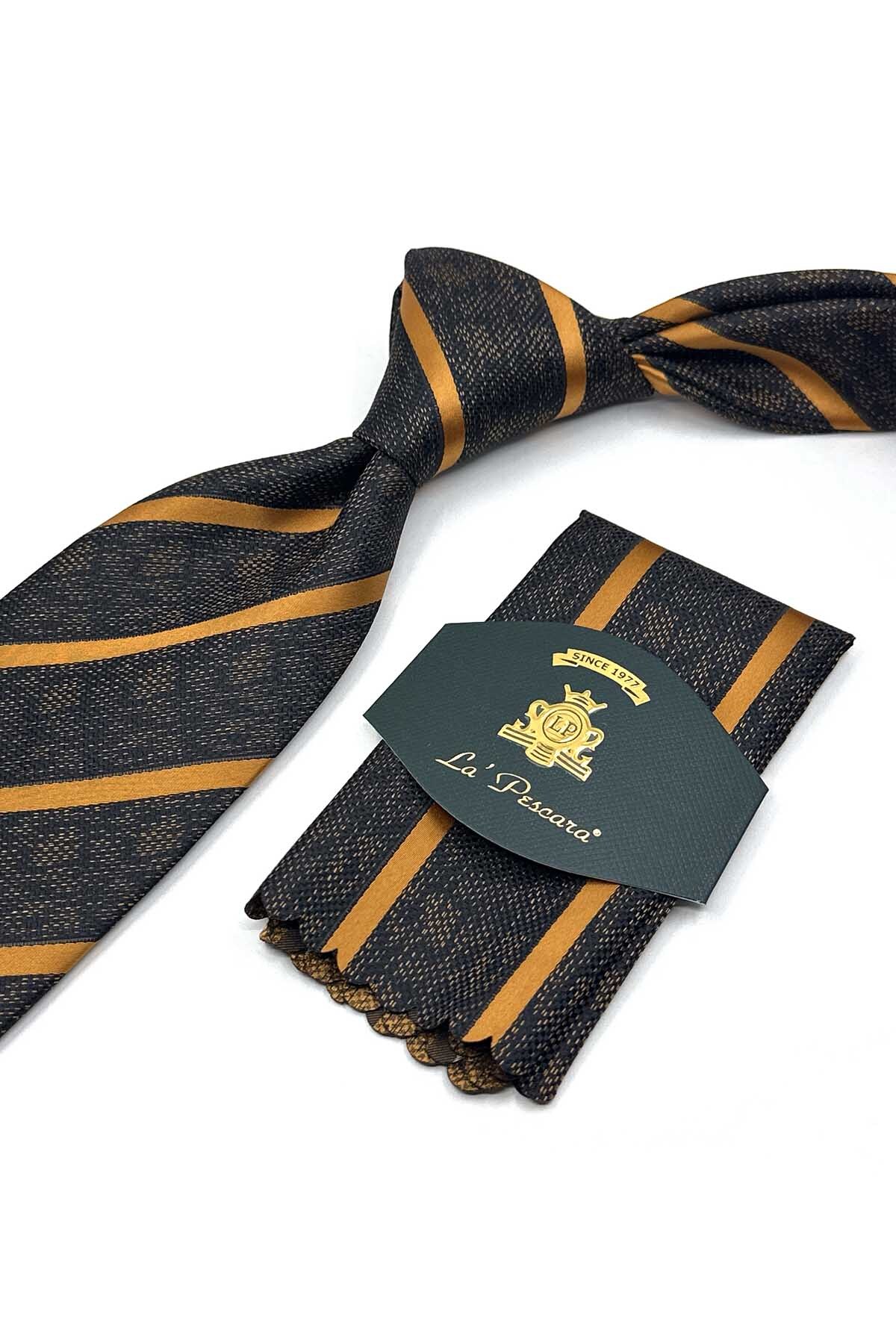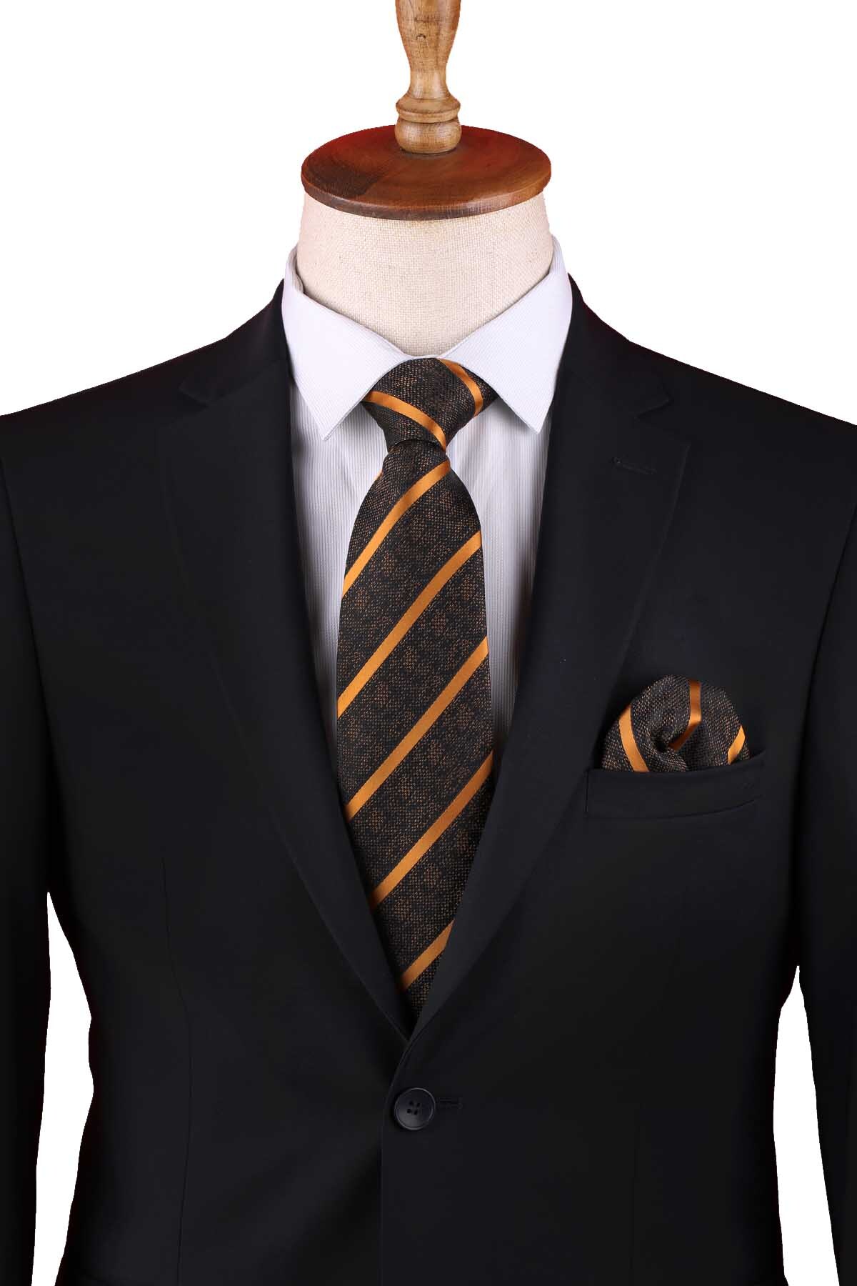 خرید اینترنتی کراوات کلاسیک طرح راه راه مشکی با دستمال جیبی KK12667 برند Kravatkolik اورجینال از Kravatkolik نمایندگی ترکیه