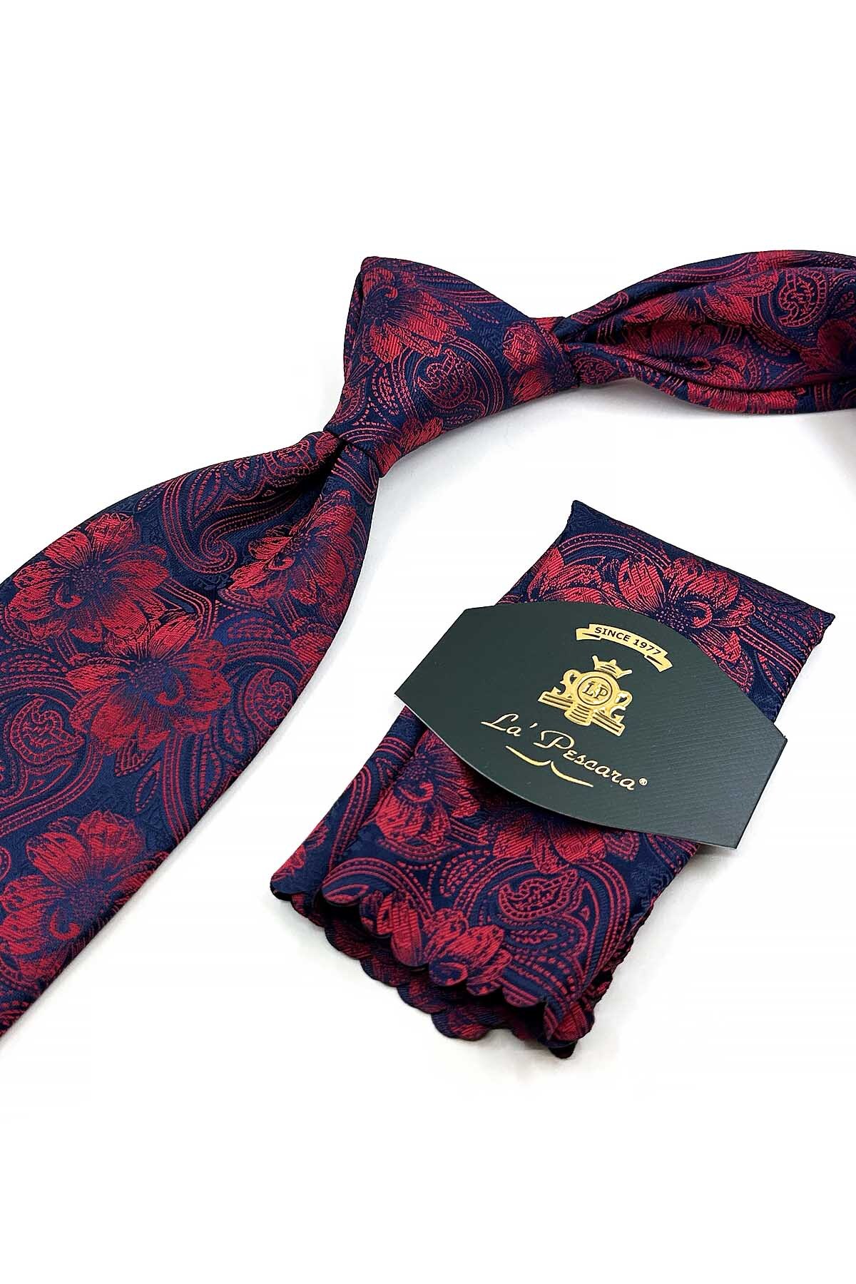 خرید اینترنتی کراوات کلاسیک طرحدار گلدار قرمز و سرمهای با دستمال جیبی KK12946 برند Kravatkolik اورجینال از Kravatkolik نمایندگی ترکیه