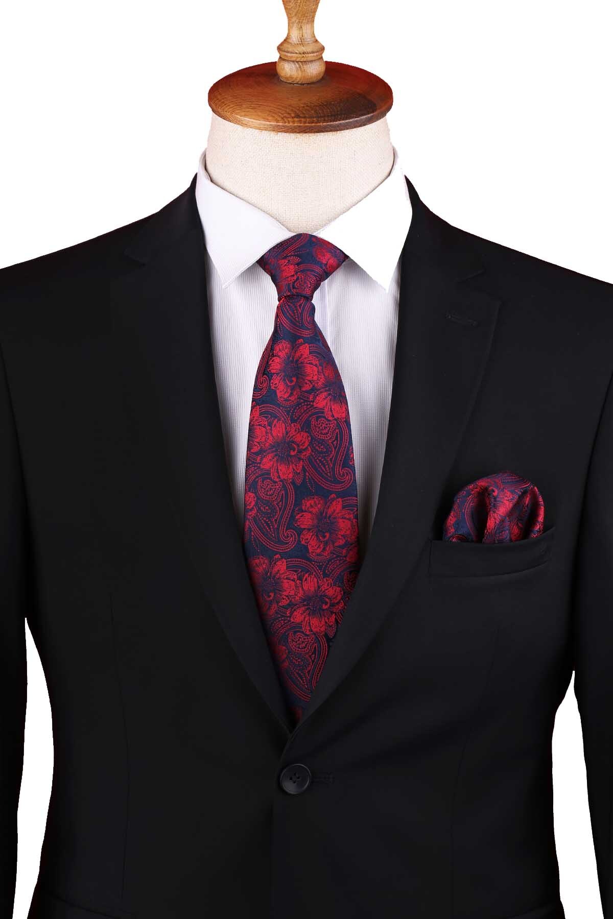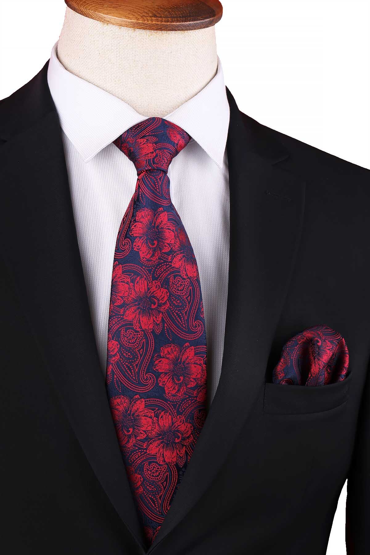 خرید اینترنتی کراوات کلاسیک طرحدار گلدار قرمز و سرمهای با دستمال جیبی KK12946 برند Kravatkolik اورجینال از Kravatkolik نمایندگی و فروشگاه معتبر ترکیه