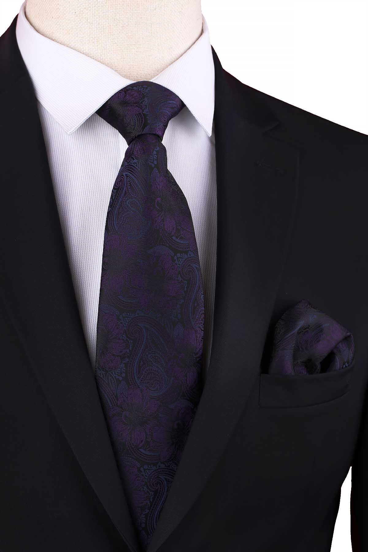 خرید اینترنتی کراوات کلاسیک طرح گلدار مشکی با دستمال جیبی KK12948 برند Kravatkolik اورجینال از Kravatkolik نمایندگی ترکیه