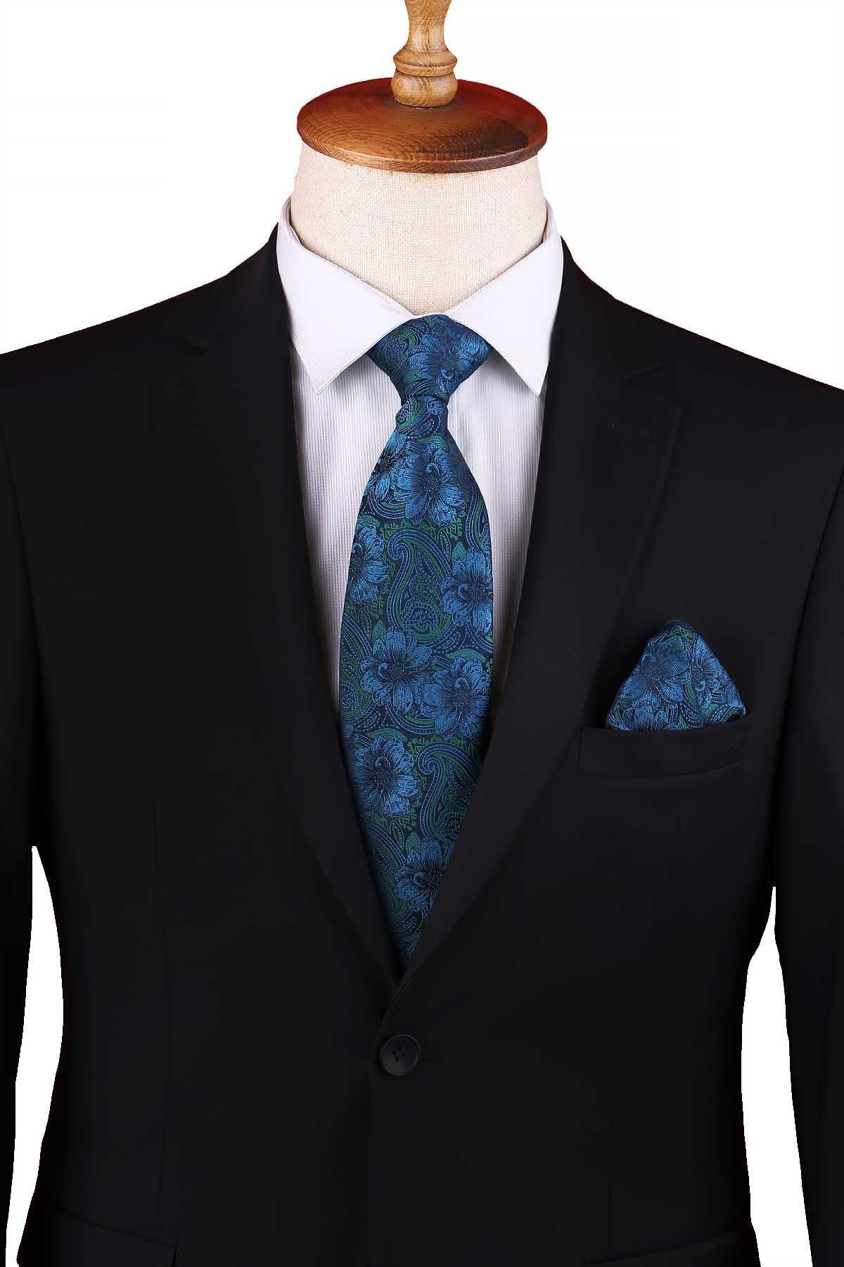 خرید اینترنتی کراوات کلاسیک طرح گلدار سبز سرمهای با دستمال جیبی KK13336 برند Kravatkolik اورجینال از Kravatkolik نمایندگی ترکیه