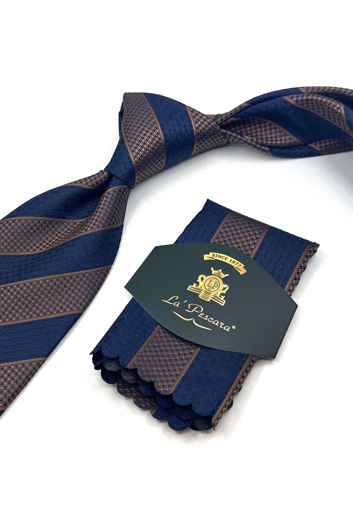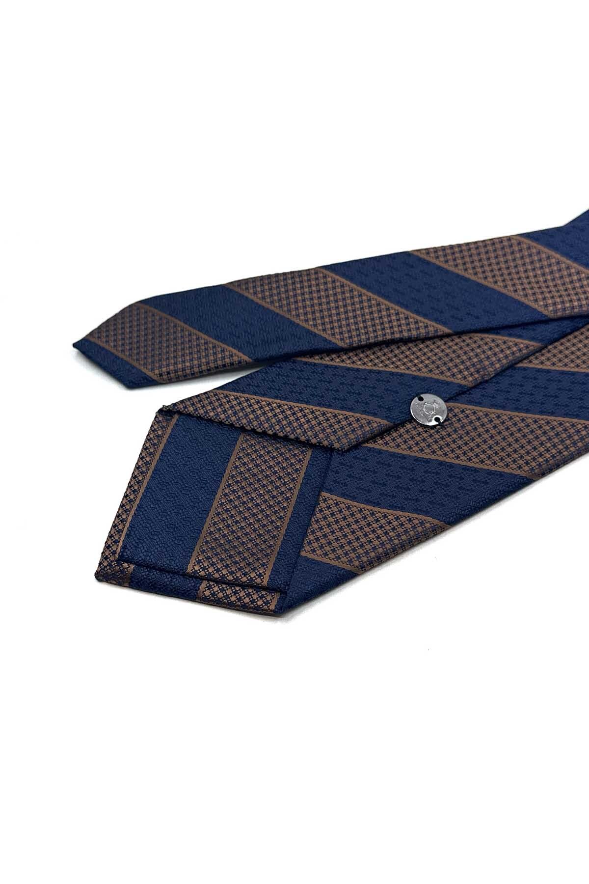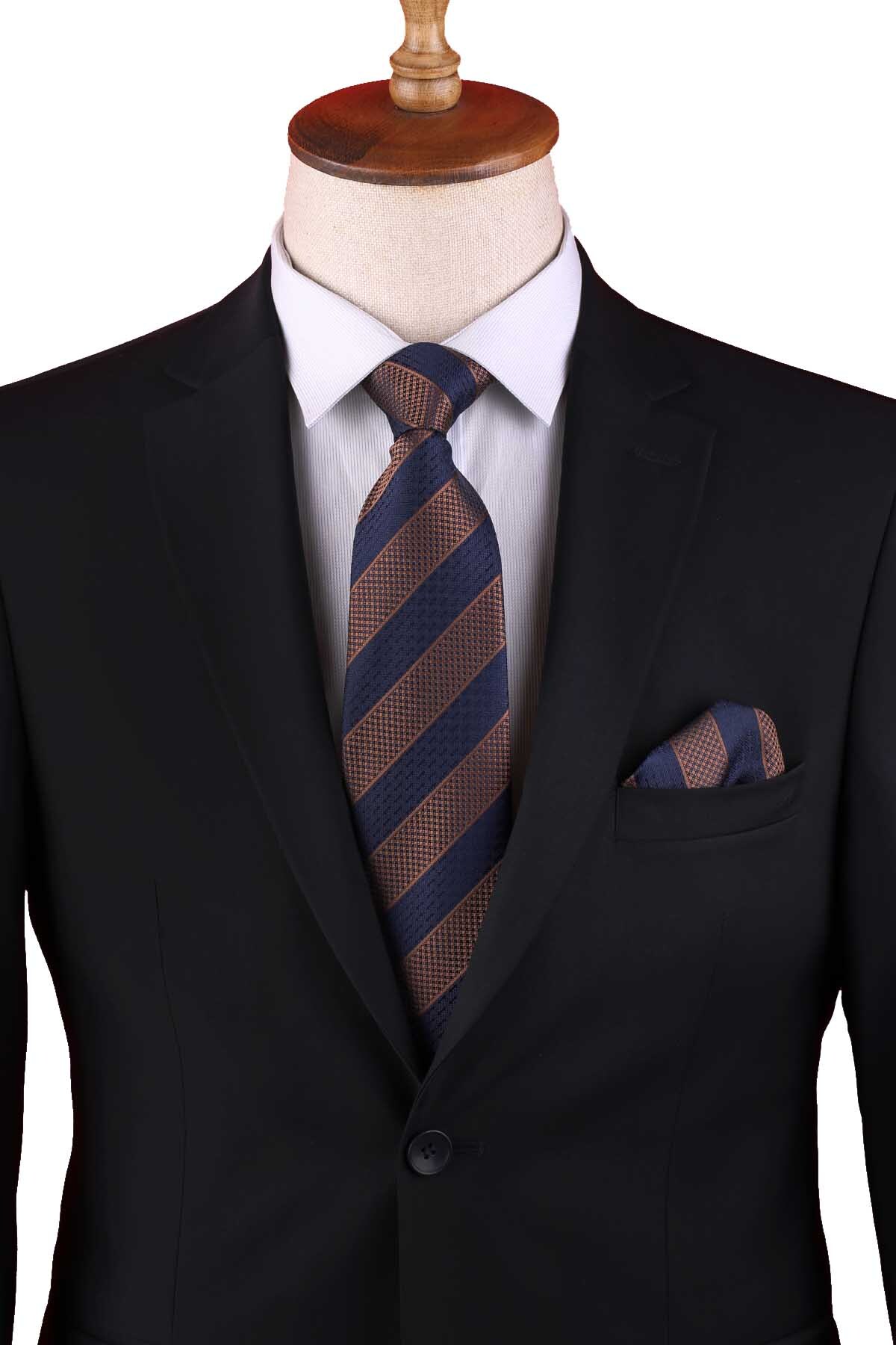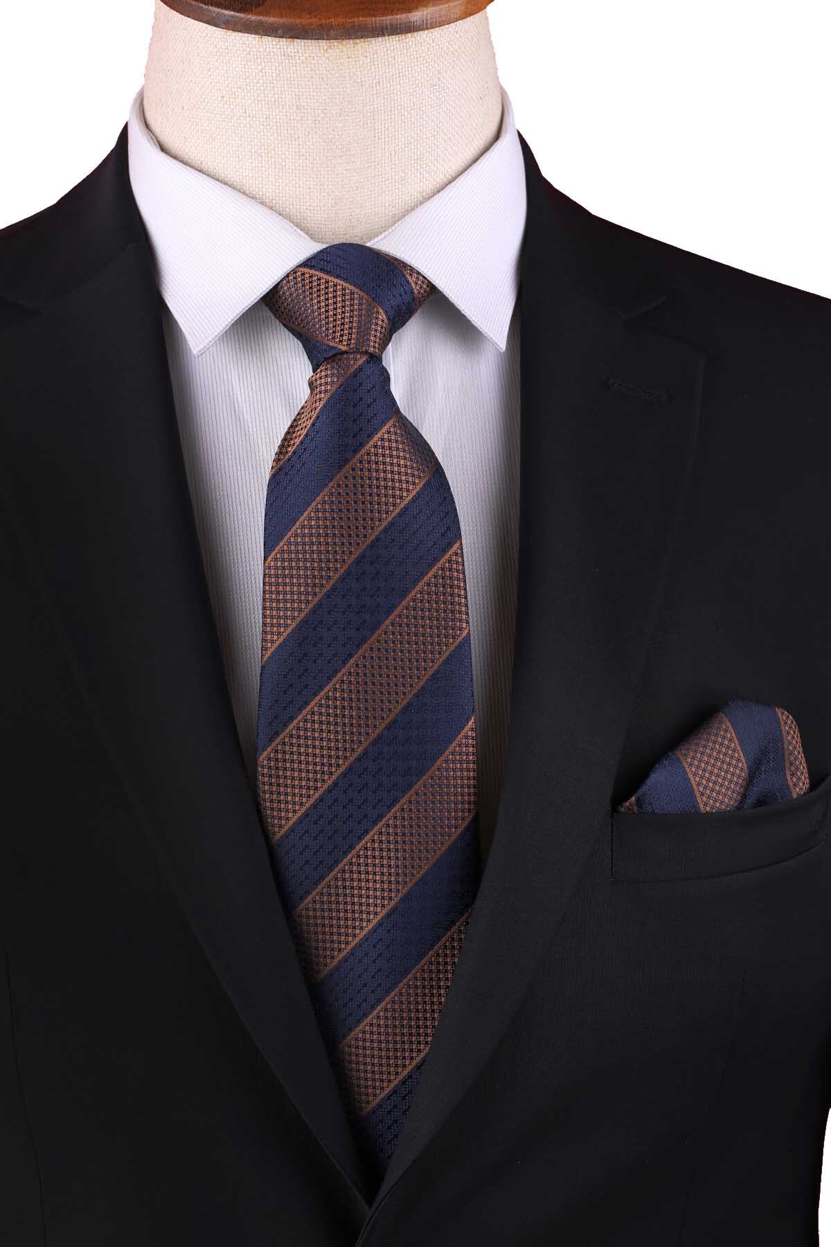 خرید اینترنتی کراوات کلاسیک راه راه سرمهای قهوهای با دستمال جیبی KK13148 برند Kravatkolik اورجینال از Kravatkolik نمایندگی ترکیه