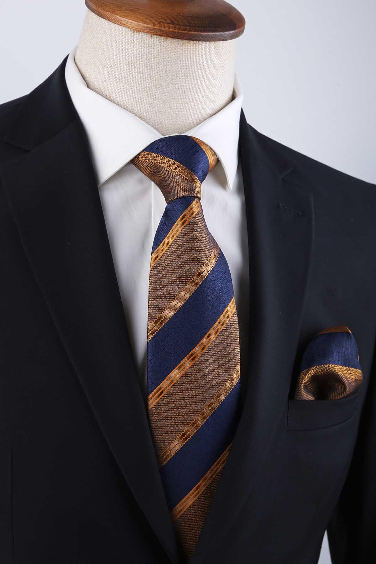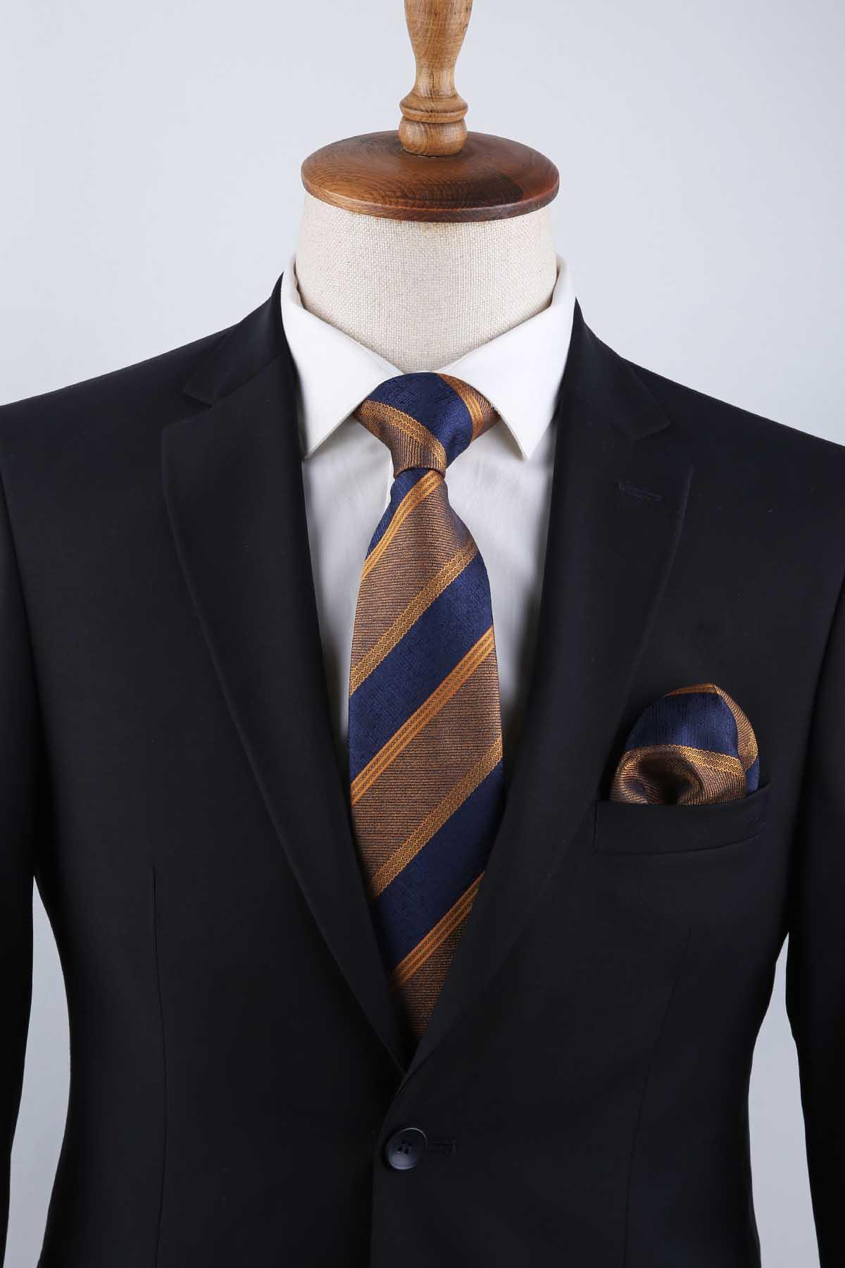 خرید اینترنتی کراوات کلاسیک راه راه زرد و سرمهای با دستمال جیبی KK13145 برند Kravatkolik اورجینال از Kravatkolik نمایندگی و فروشگاه معتبر ترکیه