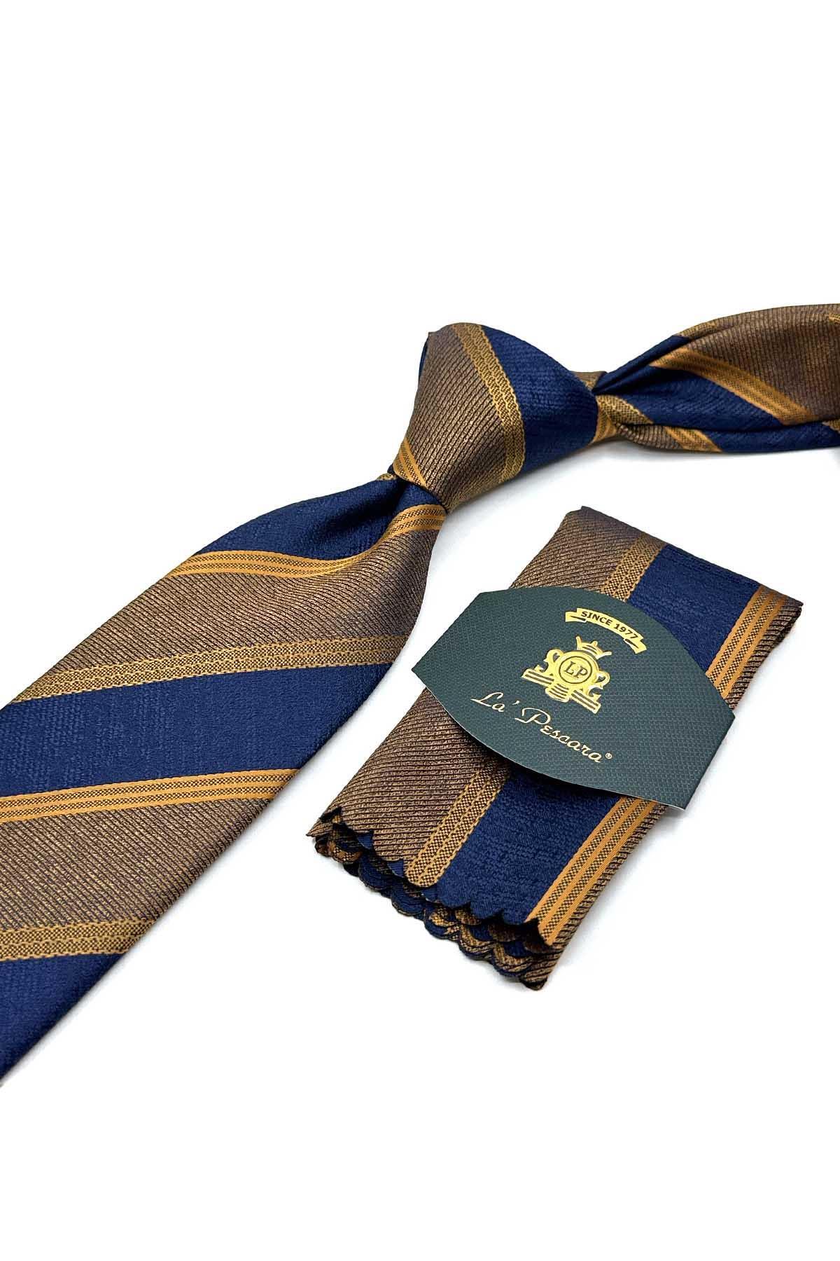خرید اینترنتی کراوات کلاسیک راه راه زرد و سرمهای با دستمال جیبی KK13145 برند Kravatkolik اورجینال از Kravatkolik نمایندگی ترکیه