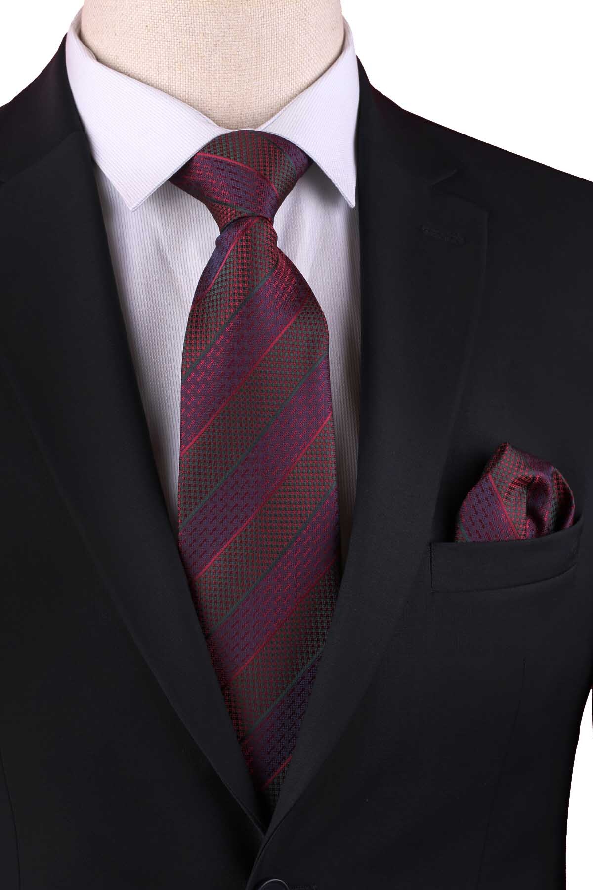 خرید اینترنتی کراوات کلاسیک راه راه زرشکی با دستمال جیبی KK13147 برند Kravatkolik اورجینال از Kravatkolik نمایندگی ترکیه