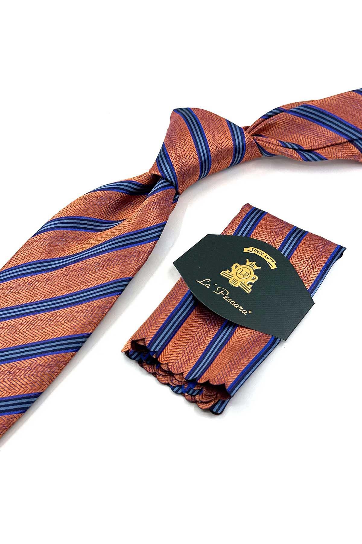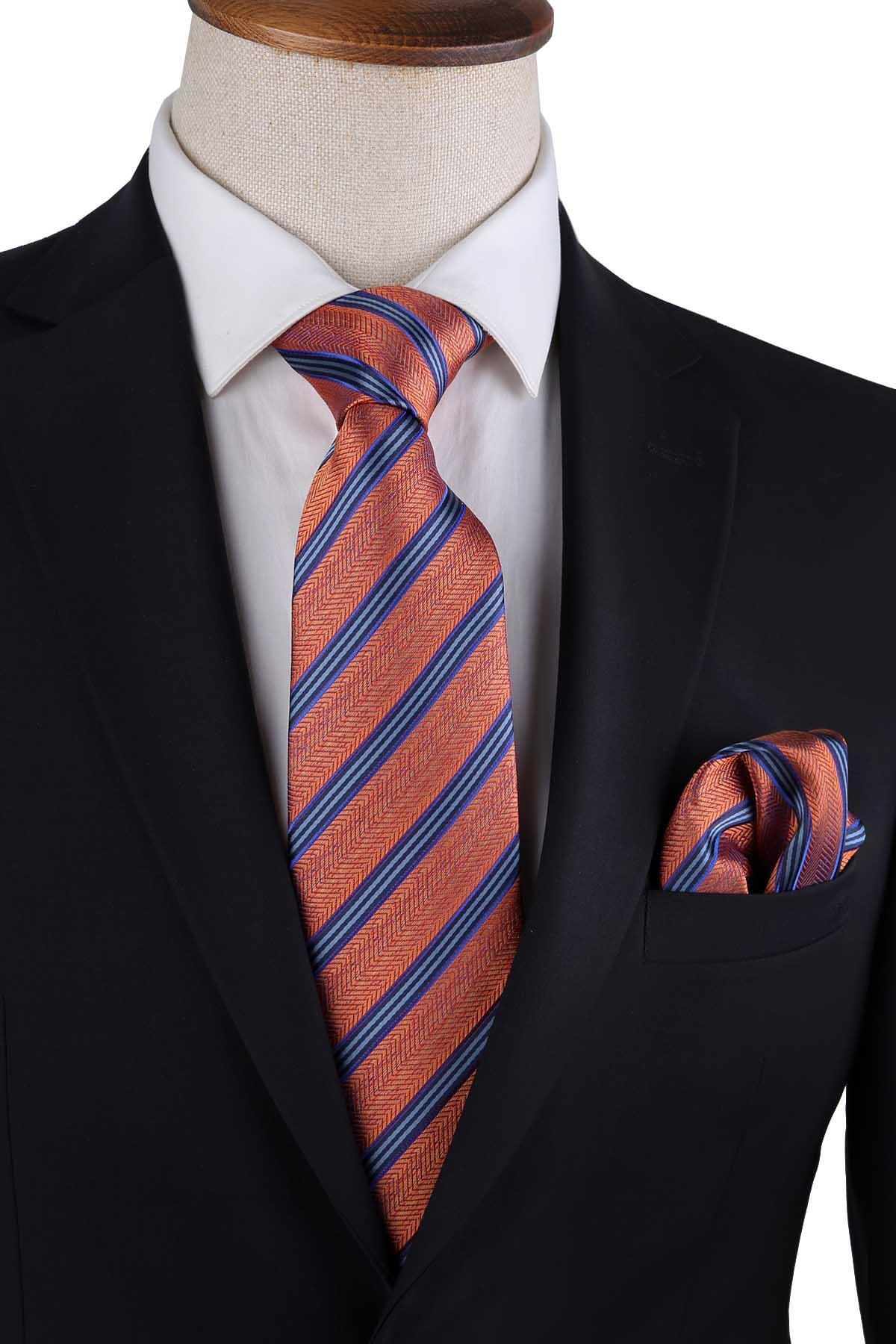 خرید اینترنتی کراوات کلاسیک طرح راه راه نارنجی با دستمال جیبی KK13193 برند Kravatkolik اورجینال از Kravatkolik نمایندگی ترکیه