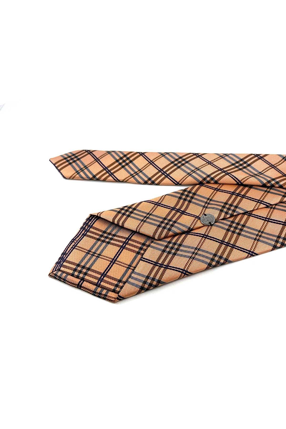 خرید اینترنتی کراوات کلاسیک طرح چهارخانه نارنجی با دستمال جیبی KK13200 برند Kravatkolik اورجینال از Kravatkolik نمایندگی ترکیه