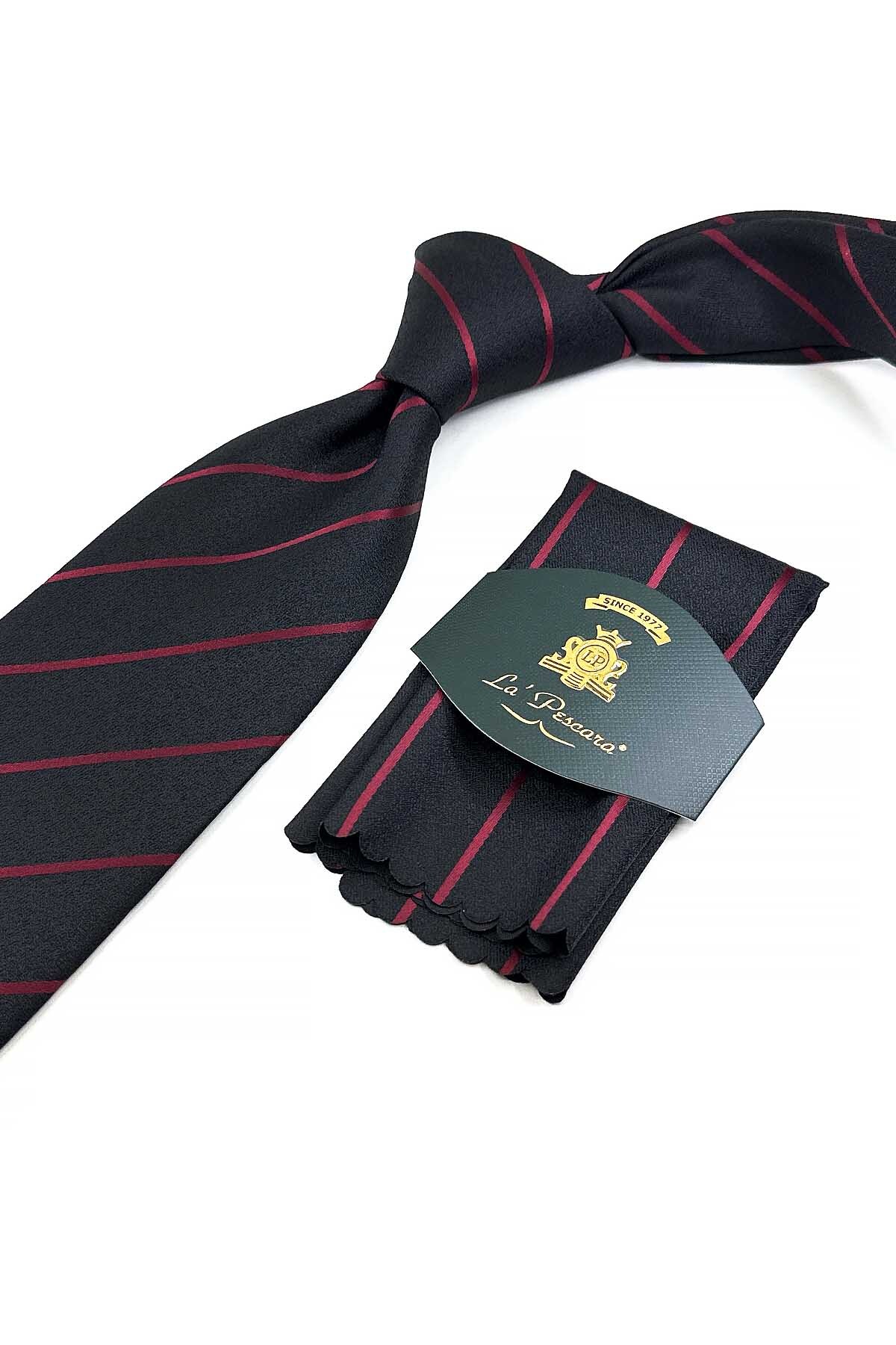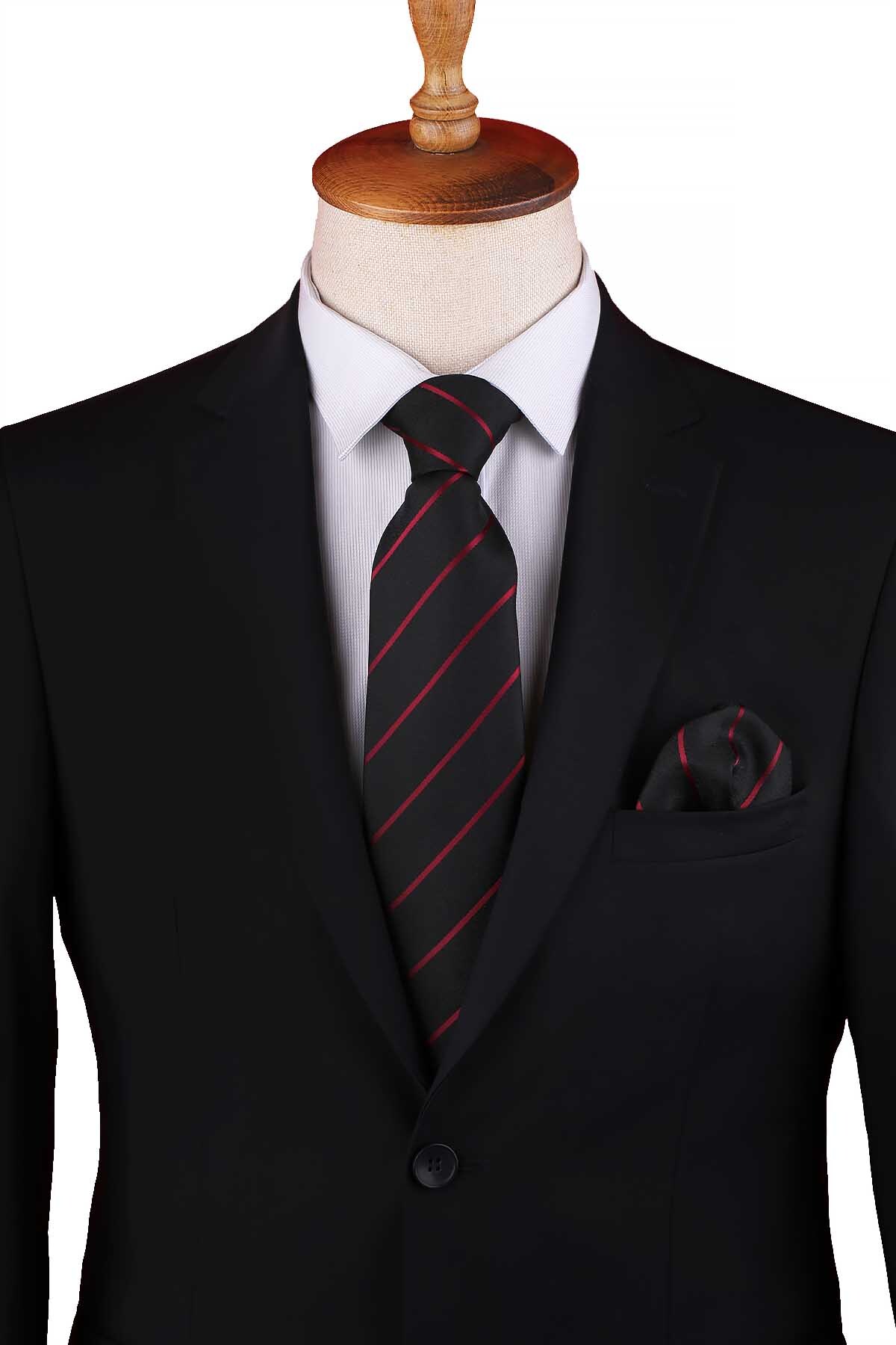 خرید اینترنتی کراوات کلاسیک راه راه مشکی و زرشکی با دستمال جیبی KK13204 برند Kravatkolik اورجینال از Kravatkolik نمایندگی ترکیه