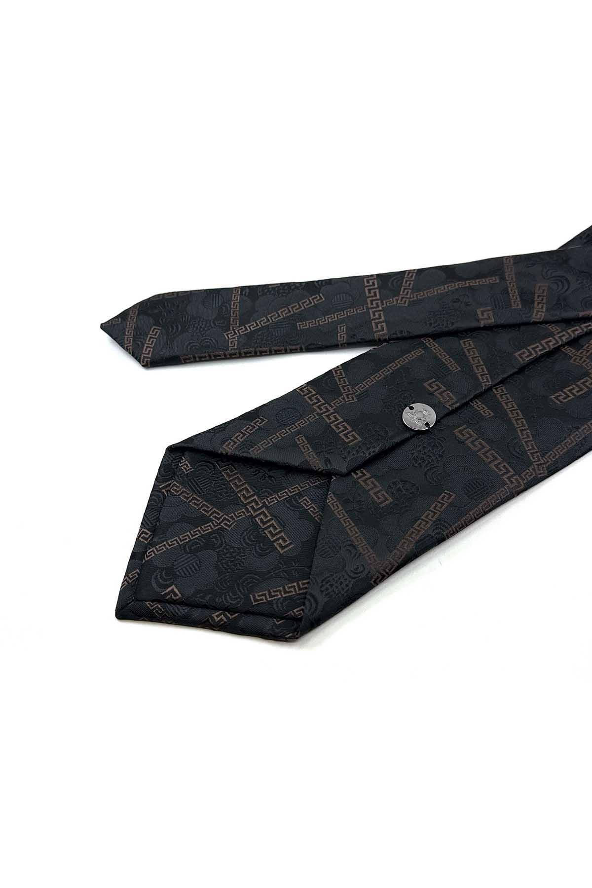 خرید اینترنتی کراوات کلاسیک طرحدار مشکی و قهوهای با دستمال جیبی KK13312 برند Kravatkolik اورجینال از Kravatkolik نمایندگی ترکیه