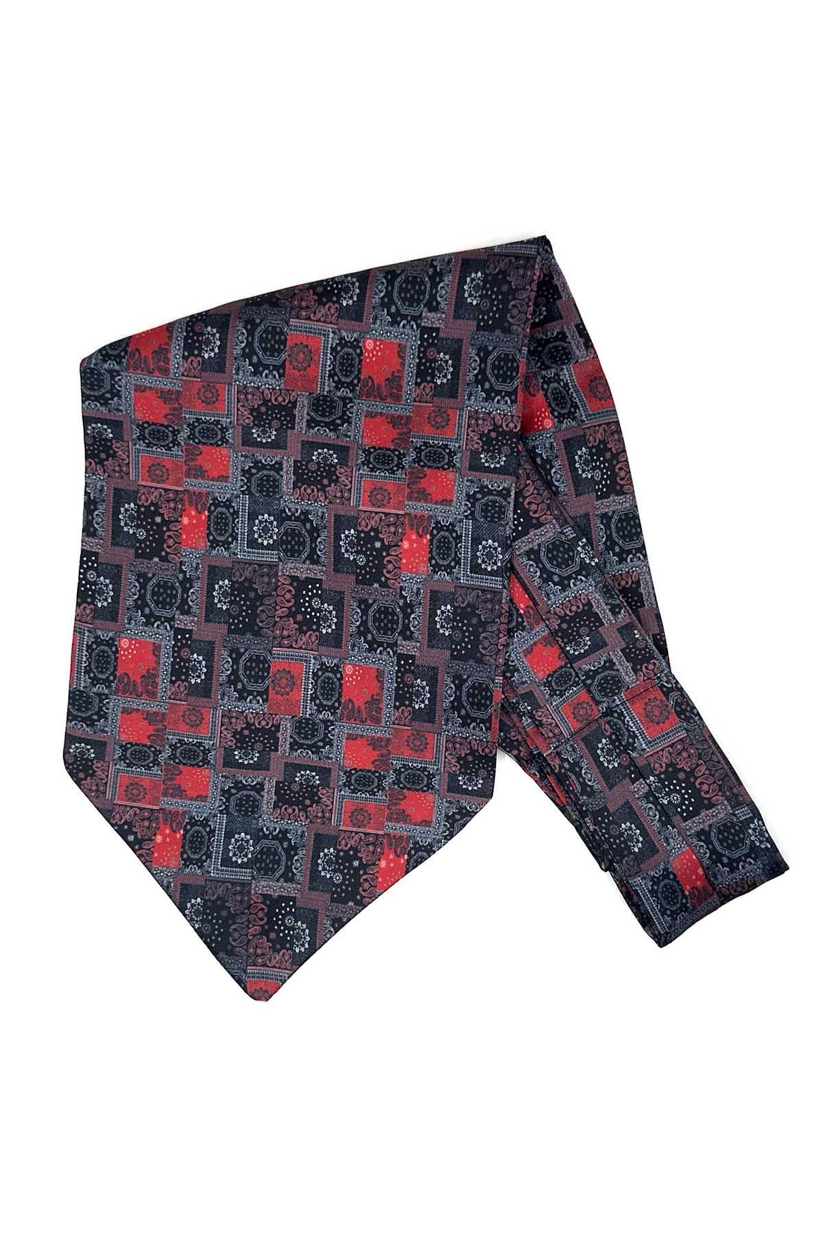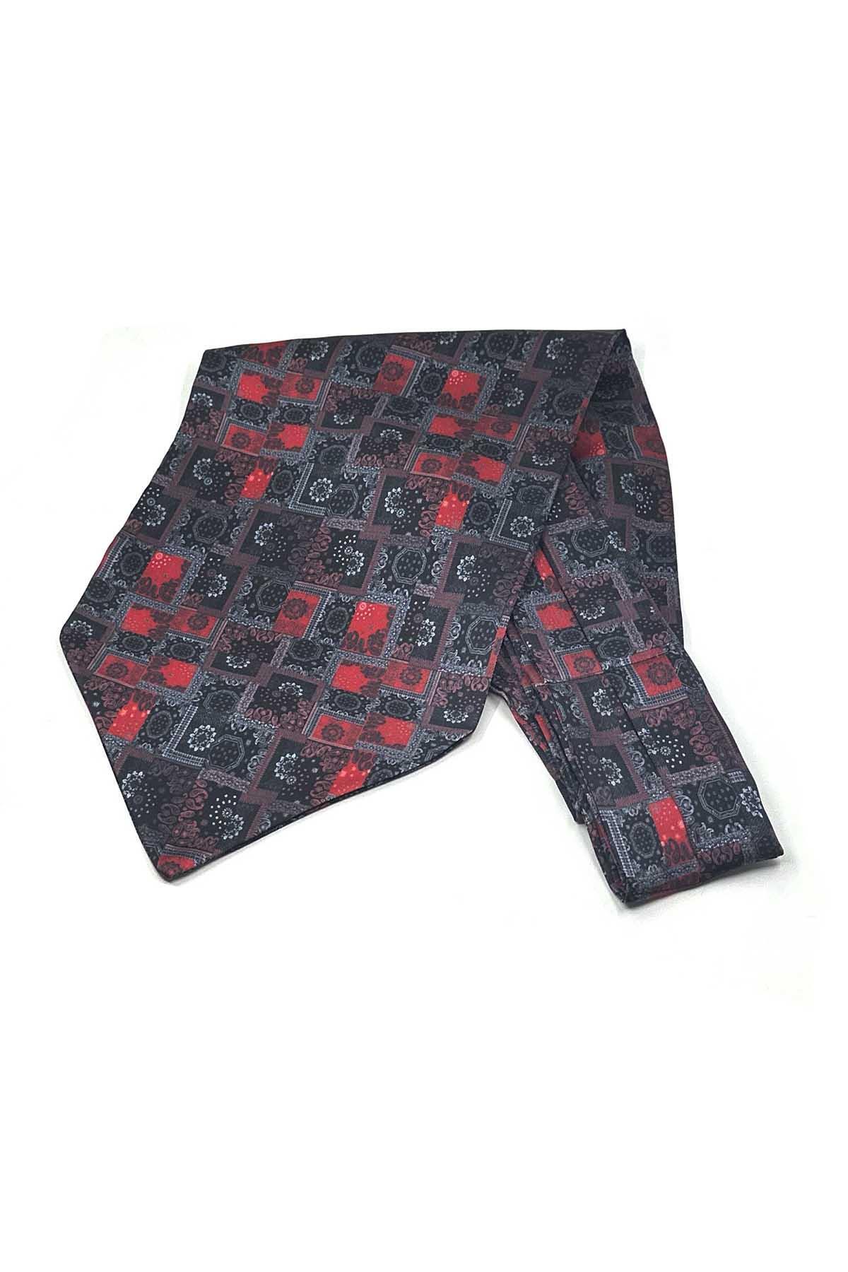 خرید اینترنتی شال گردن مردانه طرح دار قرمز دودی خاکستری Ascot K672 برند Kravatkolik اورجینال از Kravatkolik نمایندگی ترکیه