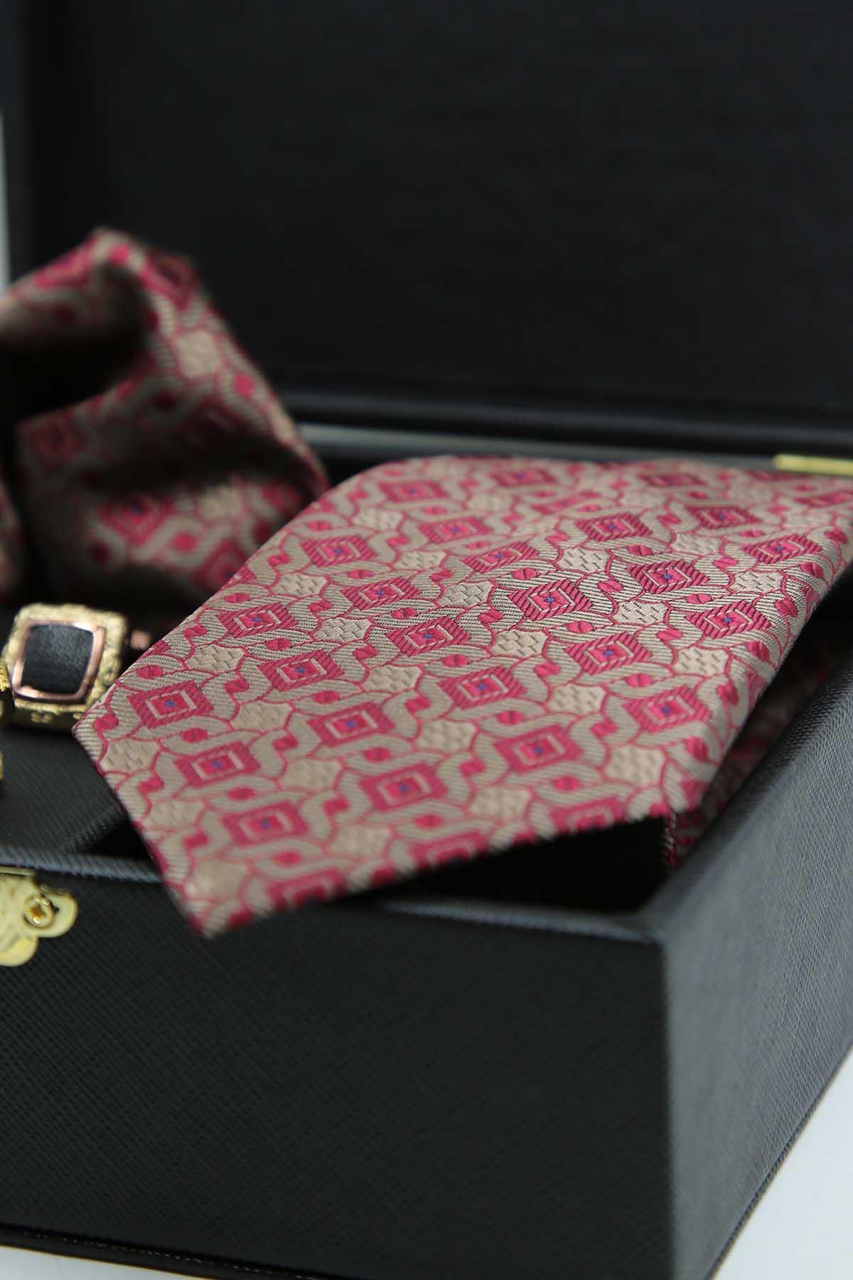 جعبه هدیه مردانه نه تنها با دکمه سرآستینهایش، بلکه با یک کراوات و سنجاق کراوات شیک نیز متمایز میشود. کراوات موجود در جعبه، با پارچه باکیفیت و طراحی خاص خود، به عنوان یک اکسسوری، استایل مردانه را ارتقا میدهد.