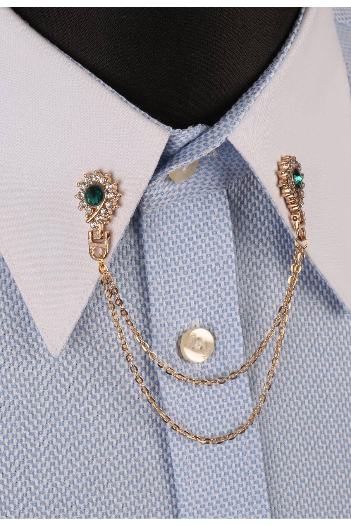 برچسب: سنجاق یقه پیراهن زنجیری کریستالی سبز زمردی GI077 مردانه