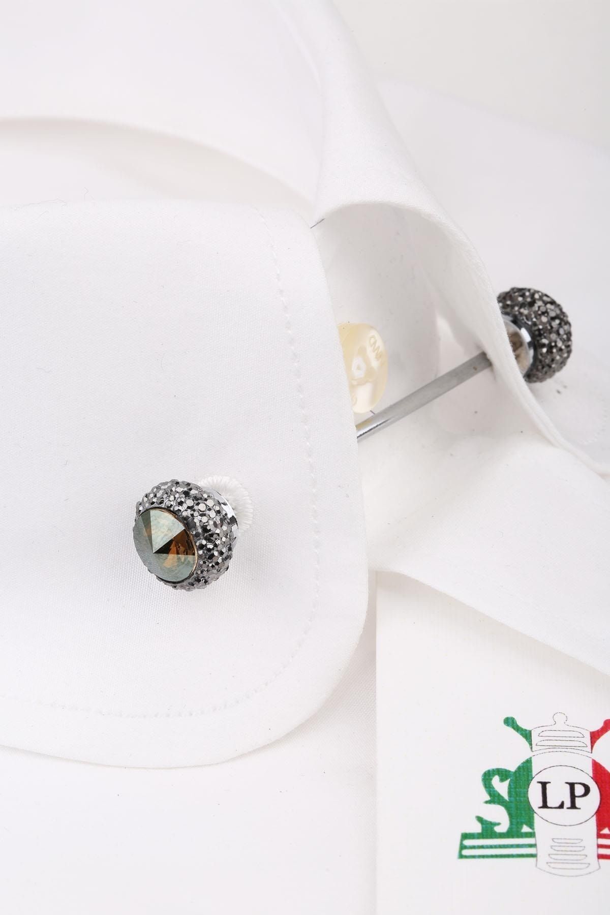 سنجاق یقه پیراهن طرح سنگ عسلی رنگ GI123 مردانه راسته | La Pescara KRVT8690000007270