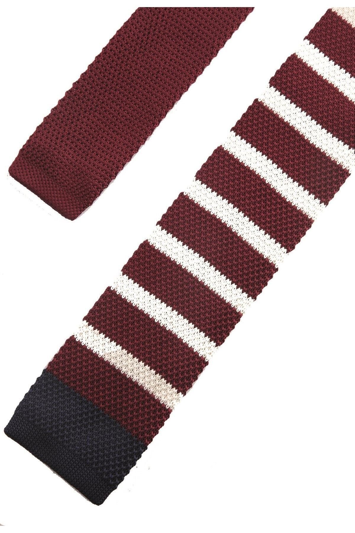 خرید اینترنتی کراوات بافتنی شرابی و سفید ۸۲۴۴ برند La Pescara اورجینال از Kravatkolik نمایندگی ترکیه