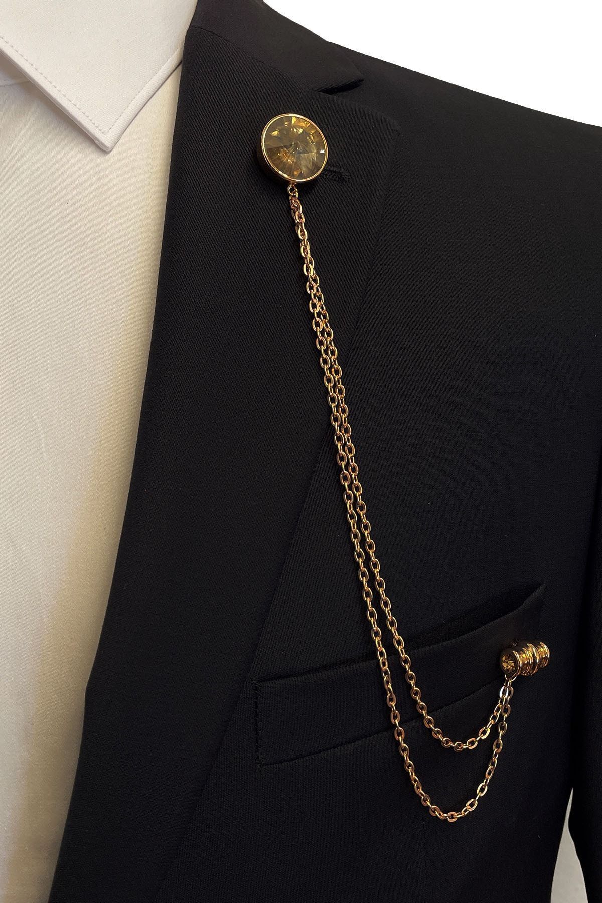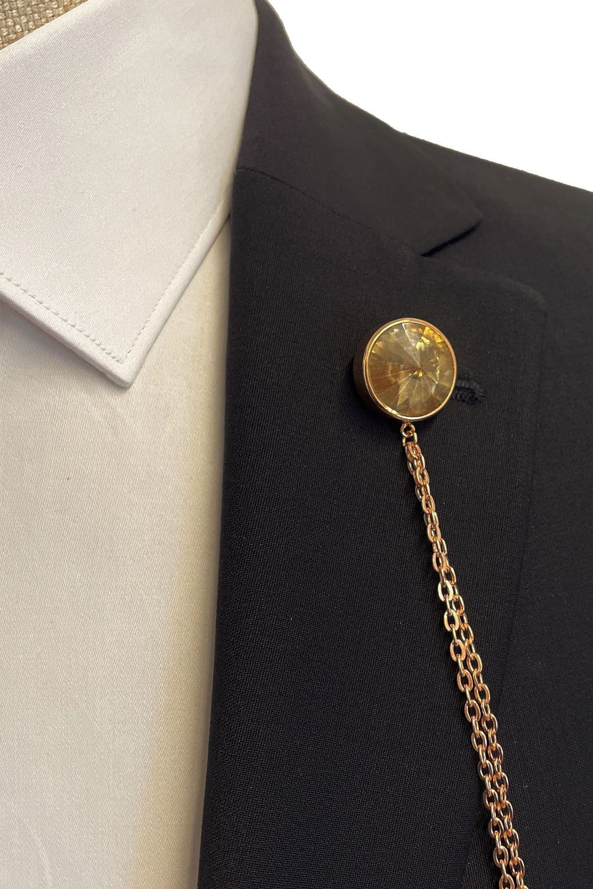 سنجاق سینه زنجیری سنگی کریستالی به رنگ کنیاک YI206 مردانه | La Pescara KRVT8690001118663