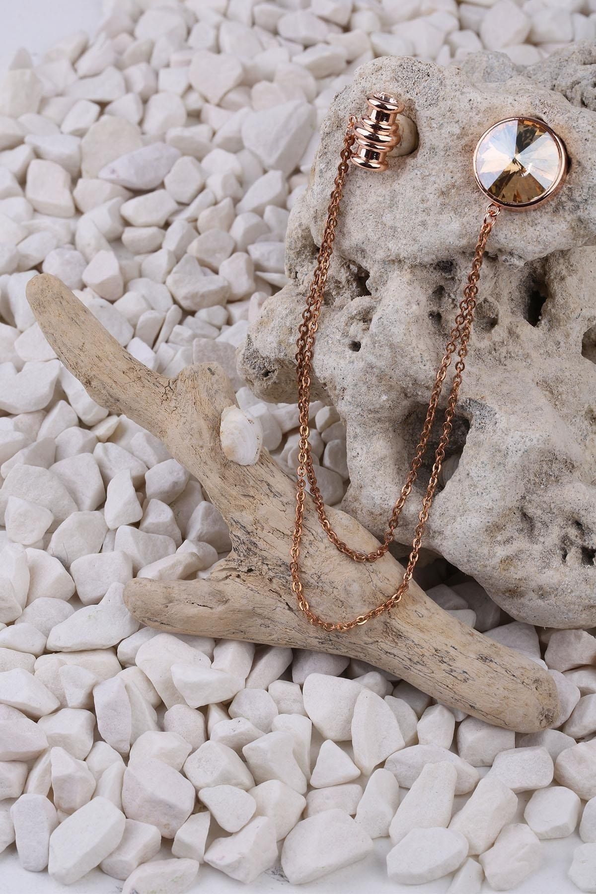 خرید اینترنتی سنجاق سینه زنجیری سنگی کریستالی بژ YI203 برند La Pescara اورجینال از Kravatkolik نمایندگی ترکیه