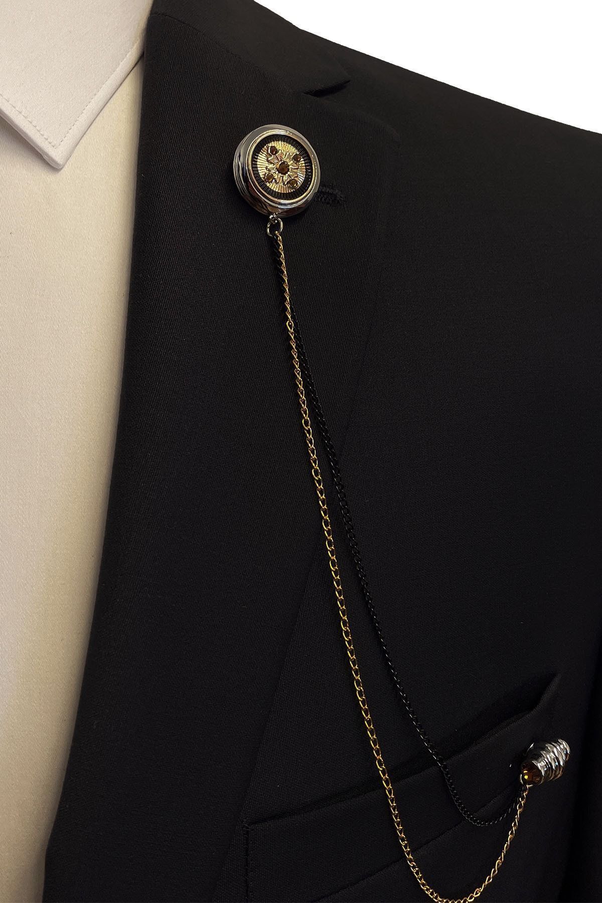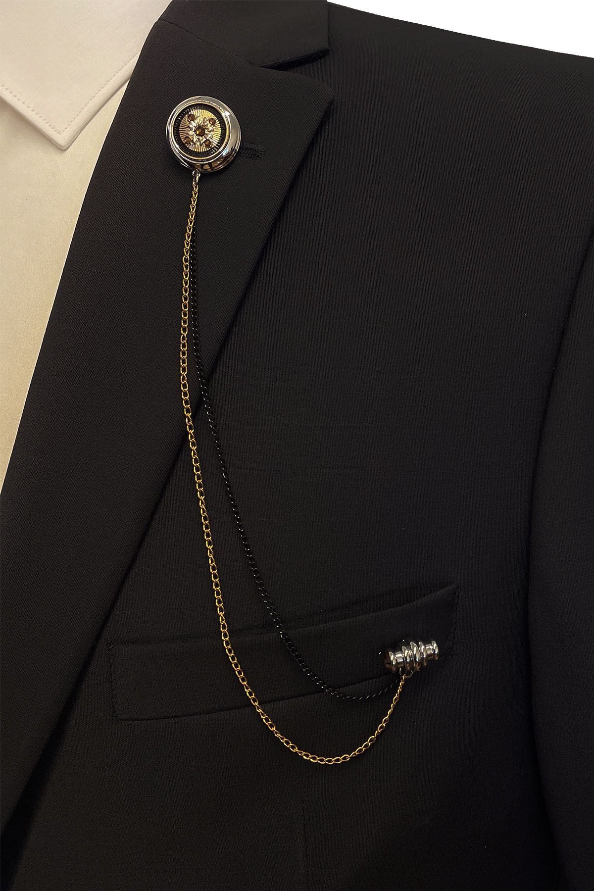 سنجاق سینه زنجیری سنگی کریستالی ساکس مدل YI219 مردانه | La Pescara KRVT8690001118676
