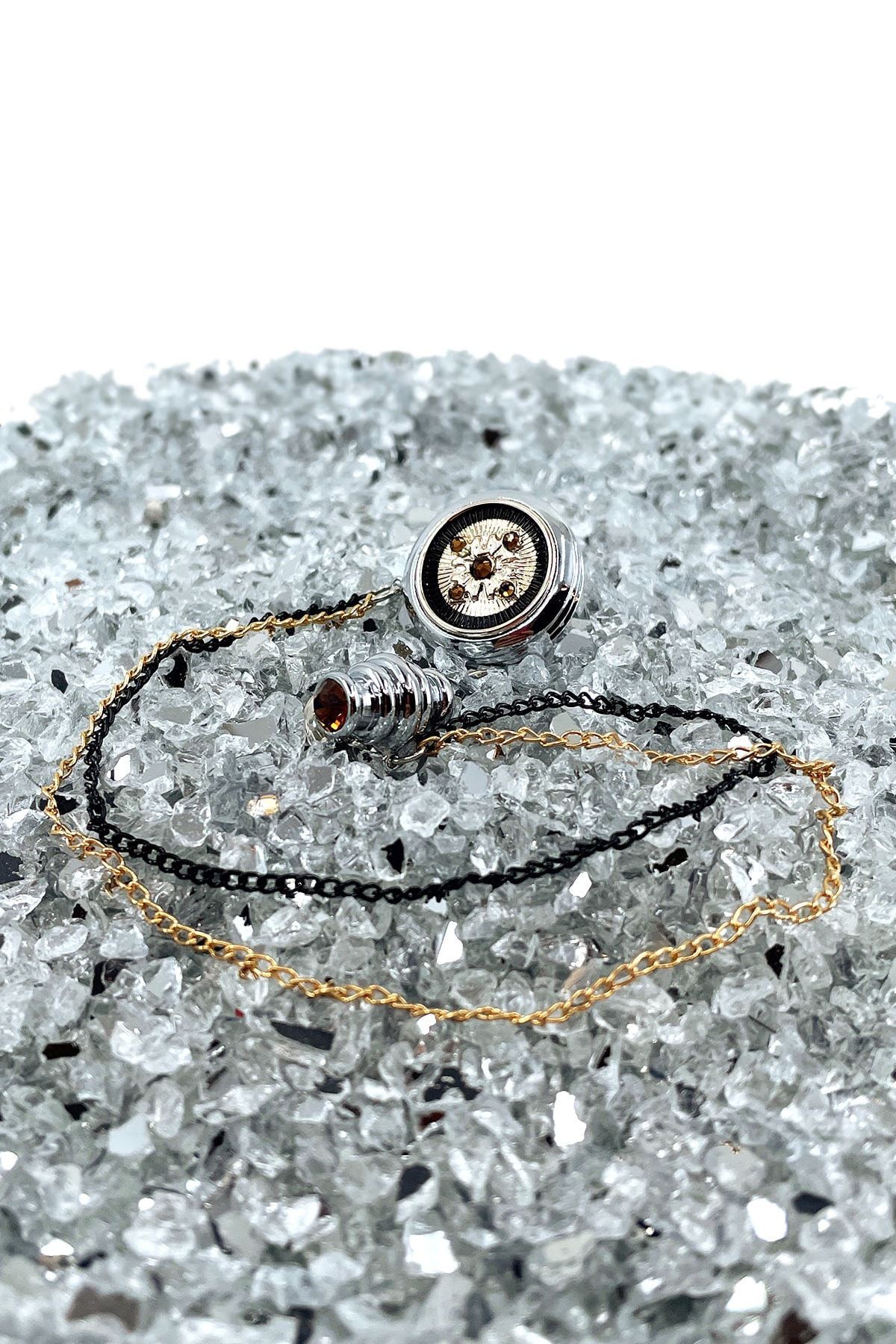 خرید اینترنتی سنجاق سینه زنجیری سنگی کریستالی طلایی رنگ YI205 برند La Pescara اورجینال از Kravatkolik نمایندگی ترکیه