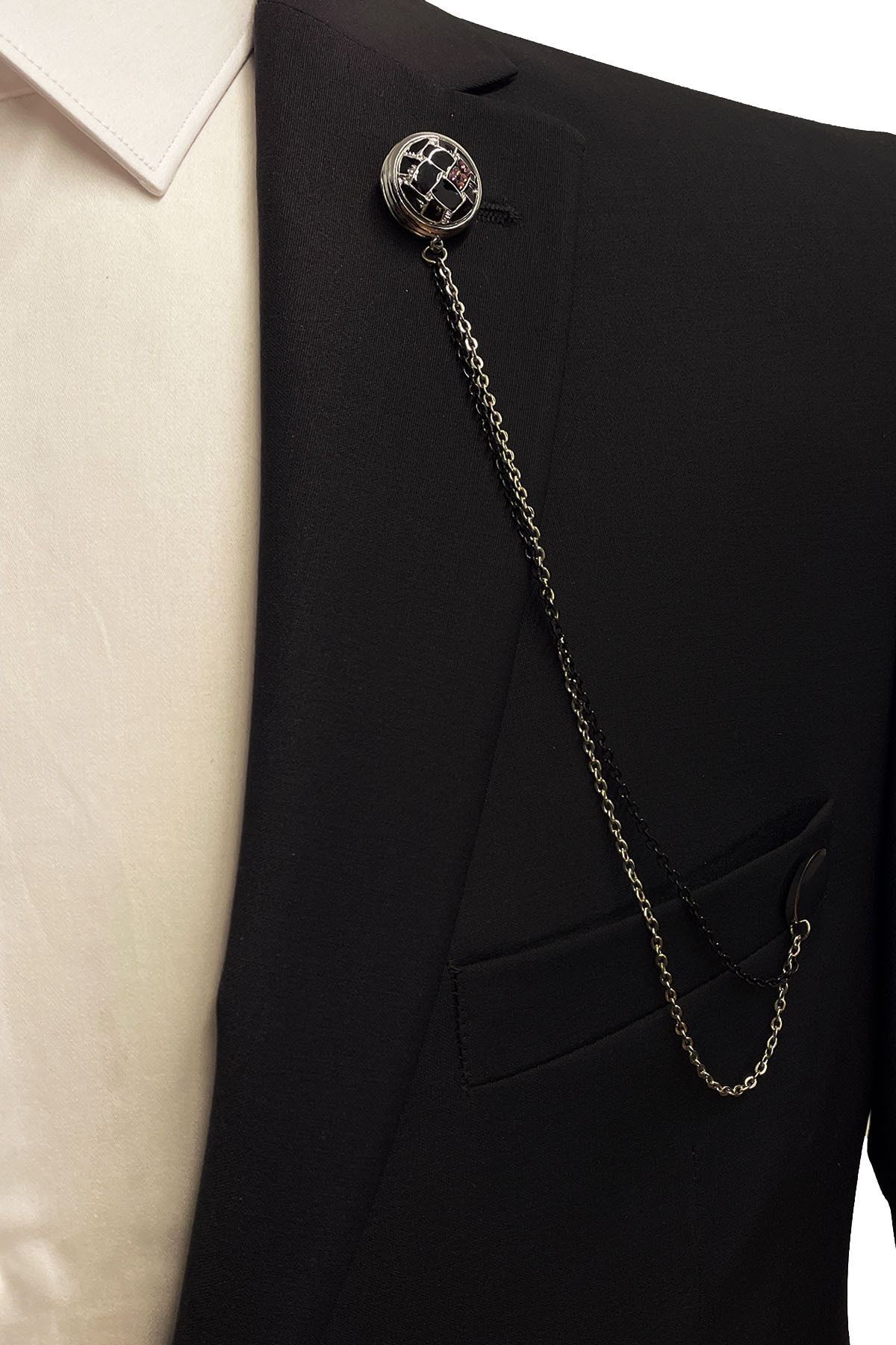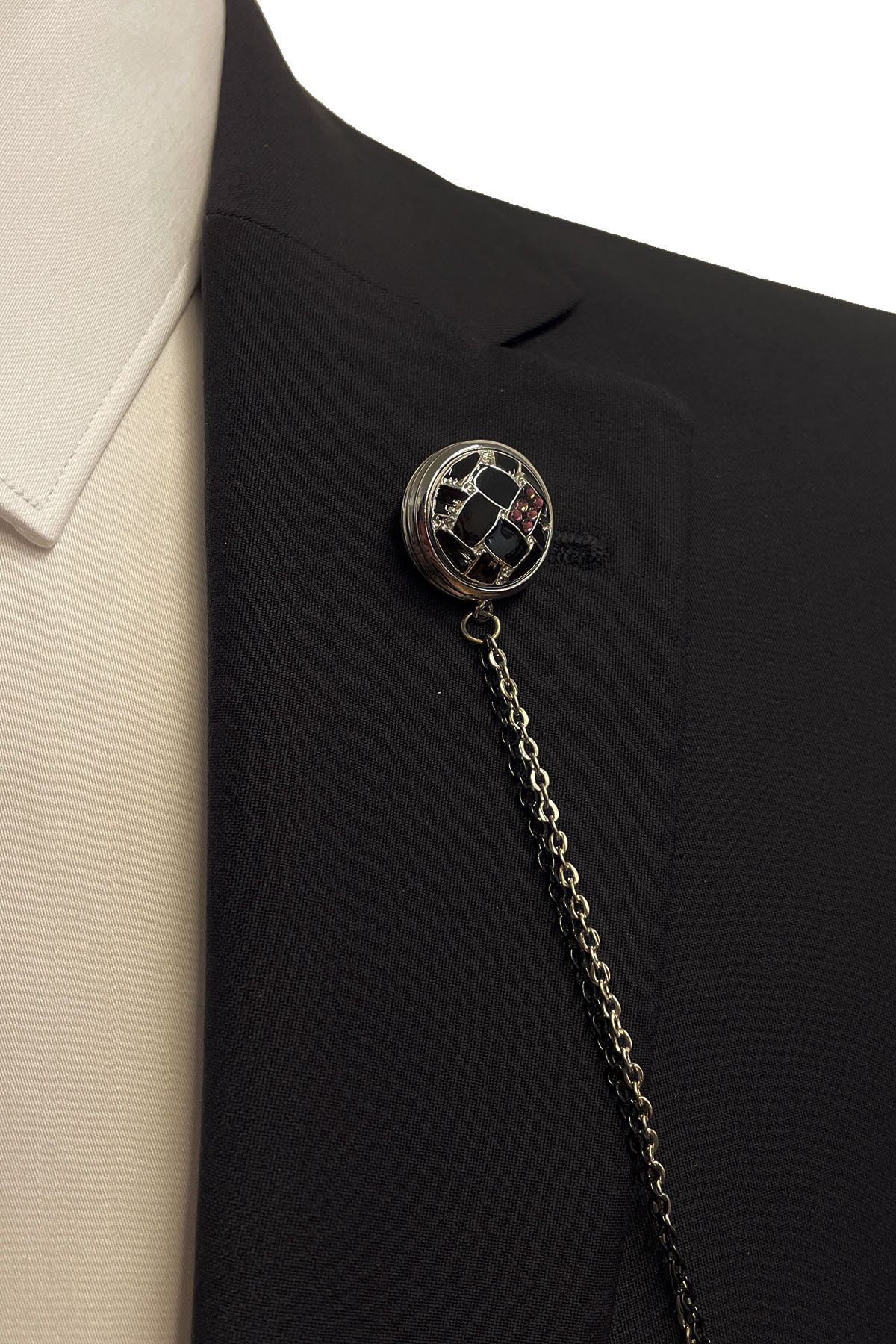 سنجاق سینه زنجیری سنگی به رنگ نفت YI217 مردانه | La Pescara KRVT8690001118674