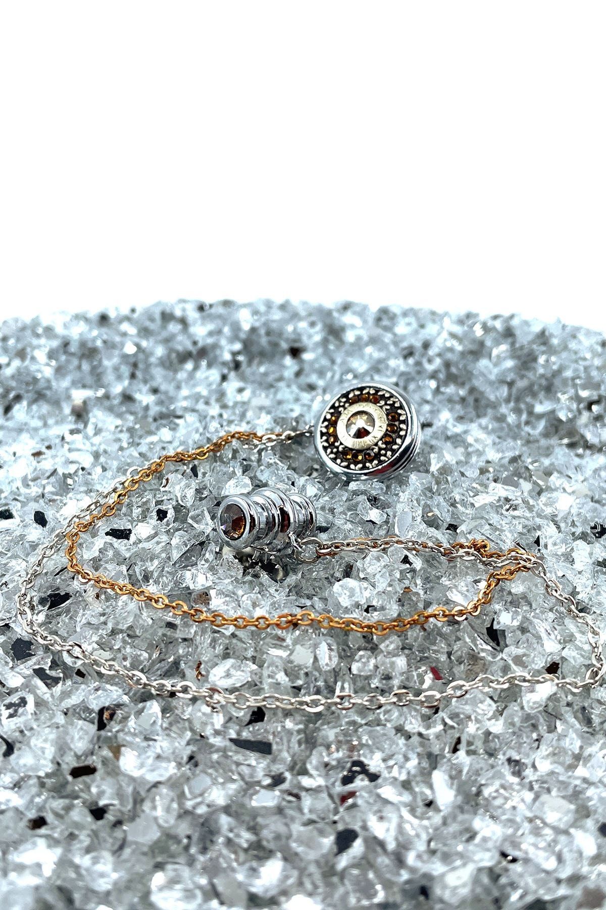خرید اینترنتی سنجاق سینه زنجیری سنگی کریستالی عسلی رنگ YI210 برند La Pescara اورجینال از Kravatkolik نمایندگی ترکیه