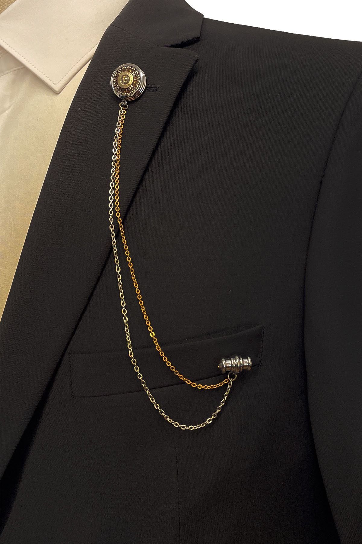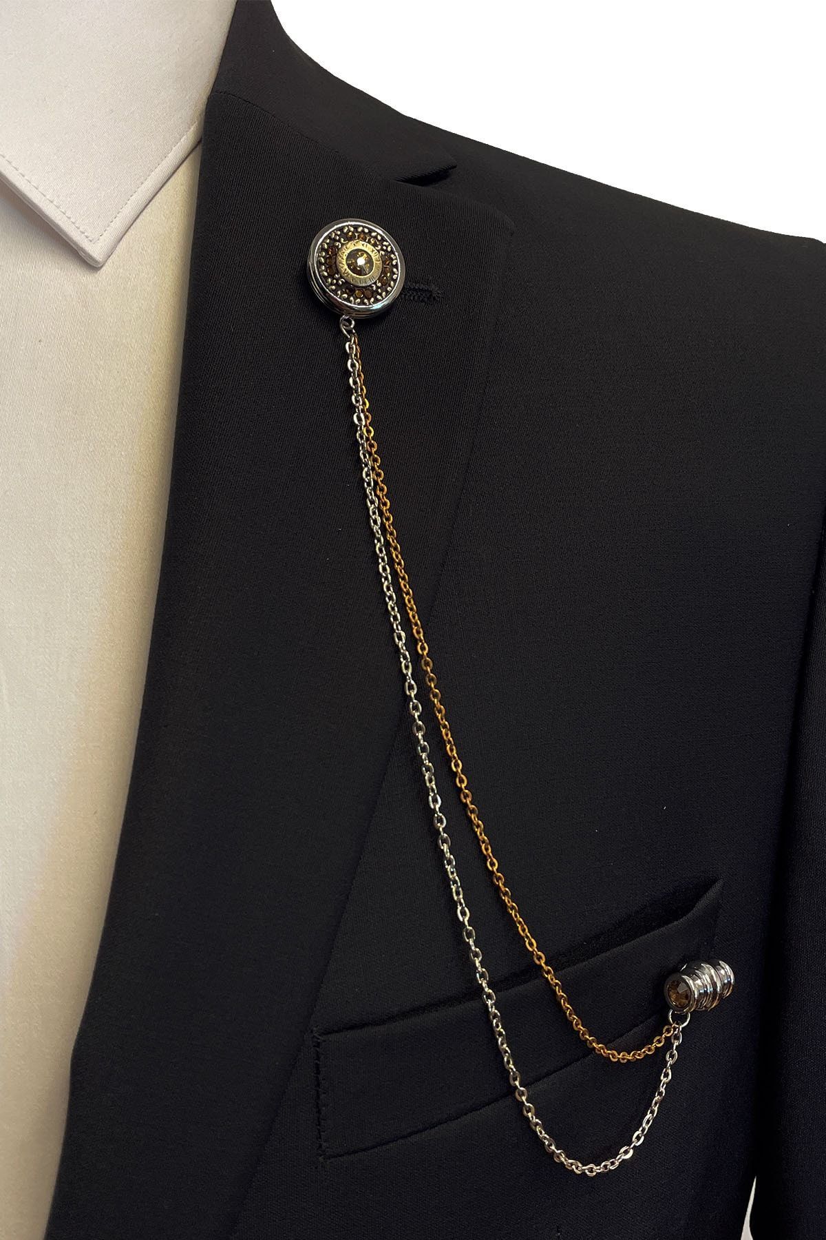 سنجاق سینه زنجیری سنگی کریستالی عسلی رنگ YI210 مردانه | La Pescara KRVT8690001118667