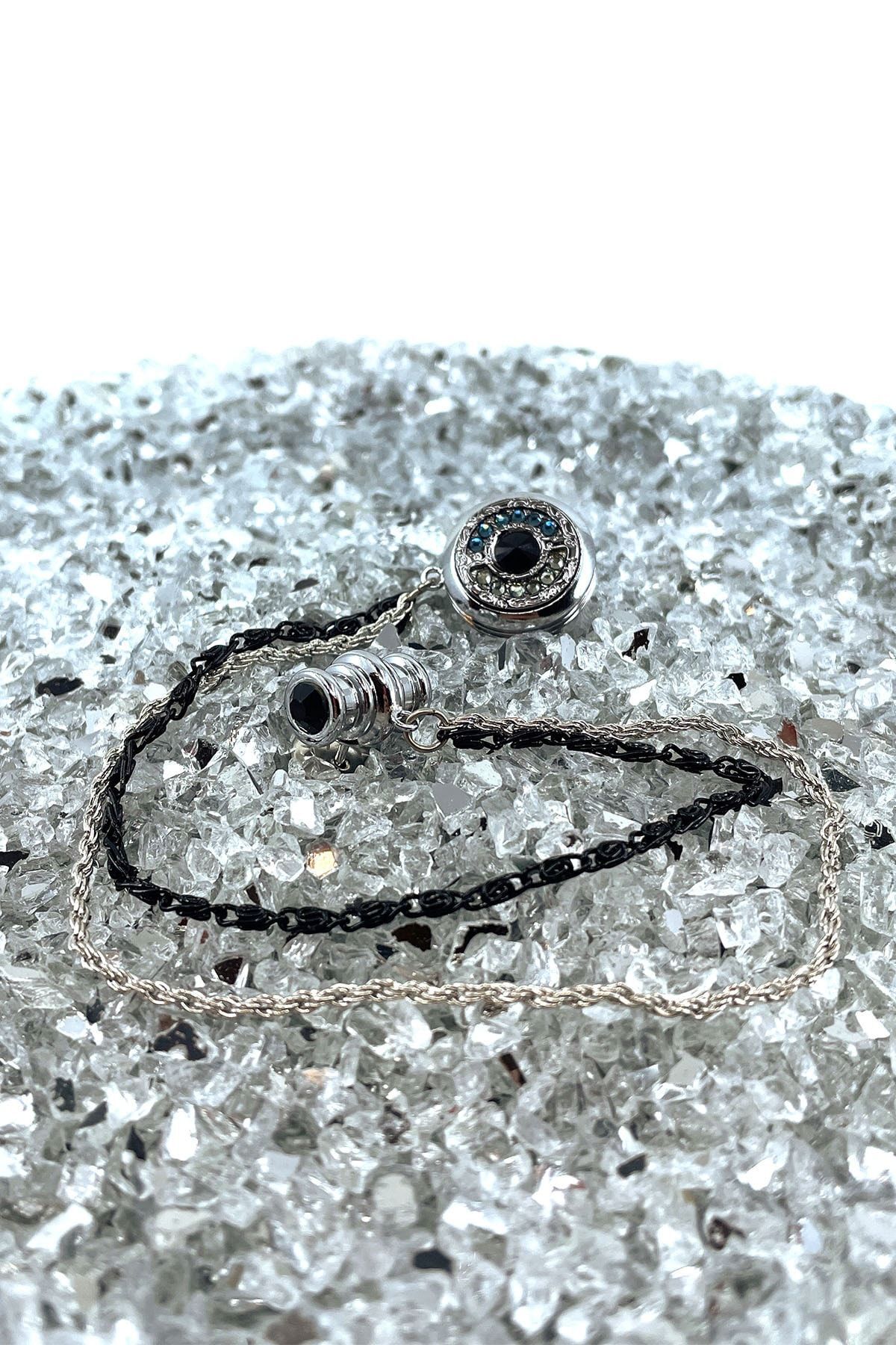 خرید اینترنتی سنجاق سینه زنجیری سنگی کریستالی مشکی YI236 برند La Pescara اورجینال از Kravatkolik نمایندگی ترکیه