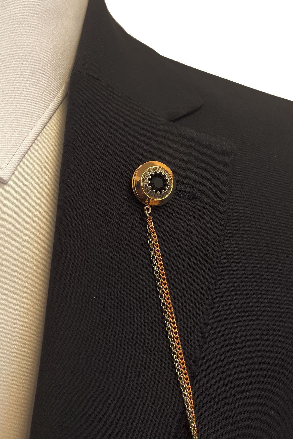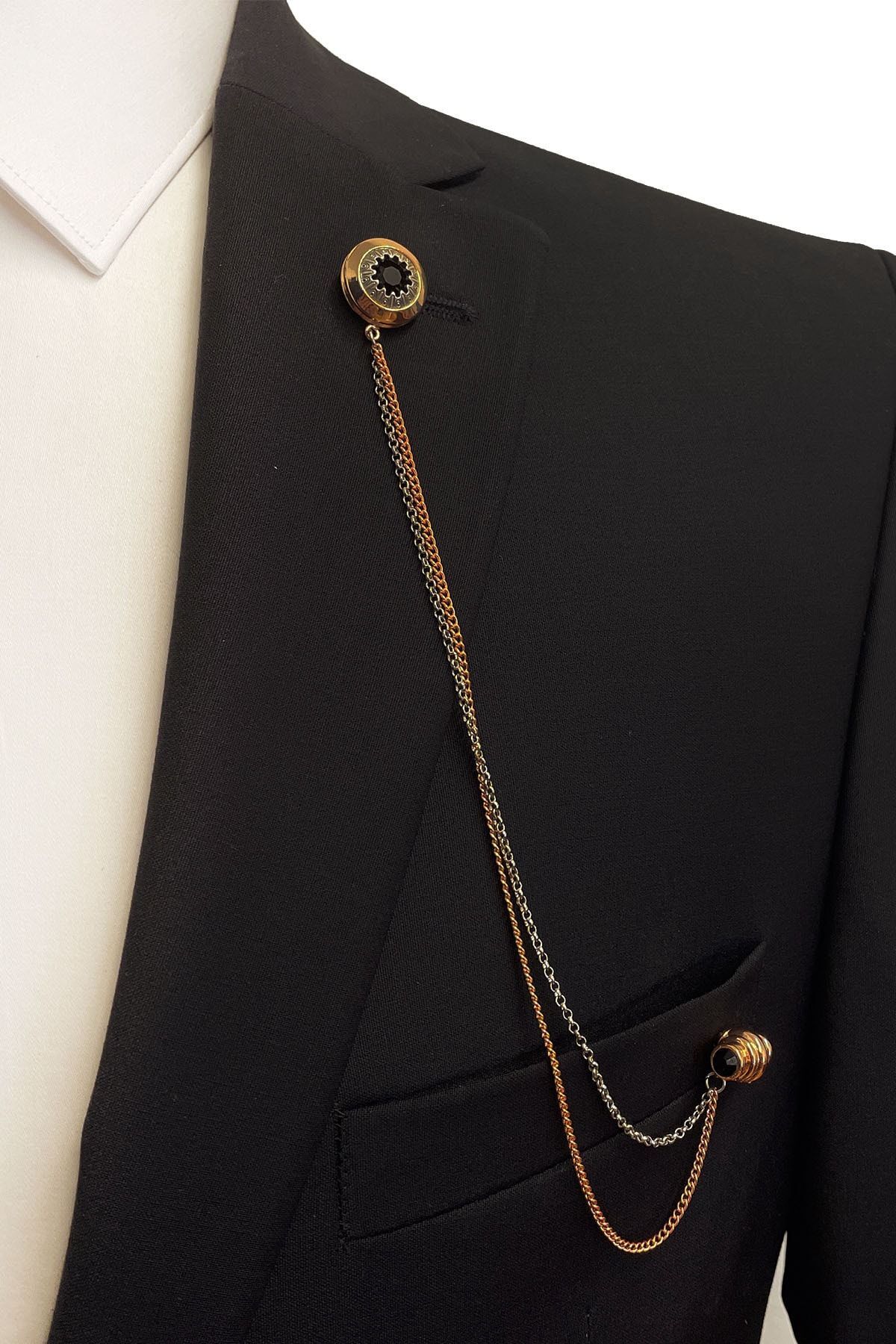 سنجاق یقه زنجیری سنگی کریستالی مشکی طرح بلیزر مدل YI248 مردانه | La Pescara KRVT8690001118705