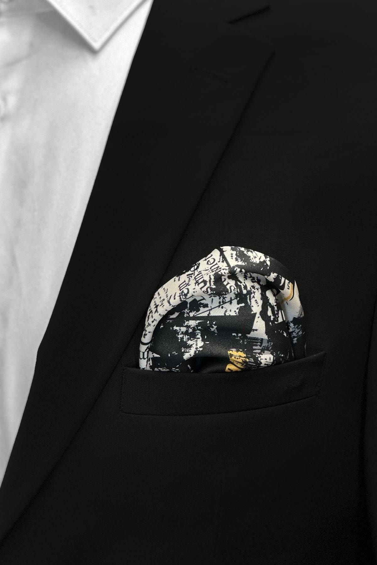 خرید اینترنتی دستمال جیبی مردانه طرح دار مشکی و سفید Sps547-2 برند La Pescara اورجینال از Kravatkolik نمایندگی ترکیه