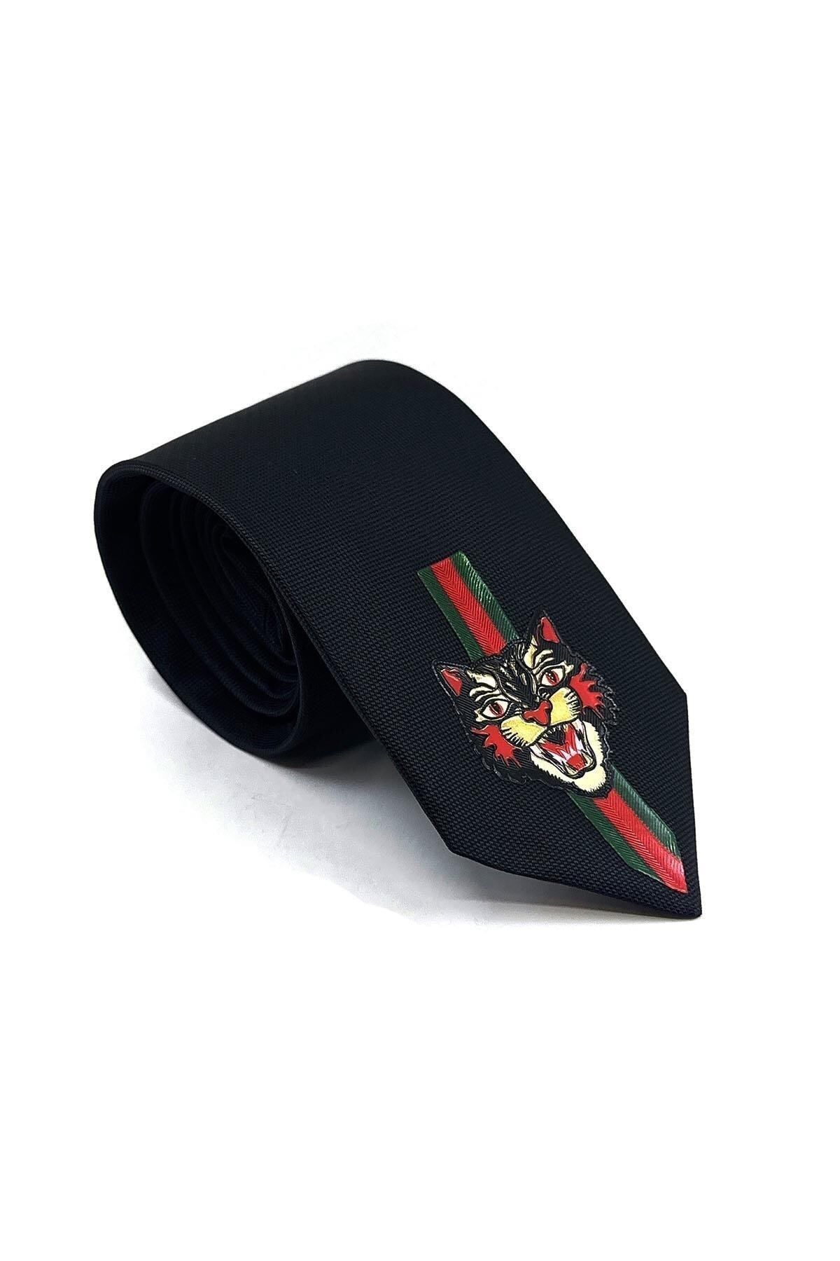 خرید اینترنتی کراوات طرح ببر ساده مشکی KK11688 برند La Pescara اورجینال از Kravatkolik نمایندگی ترکیه
