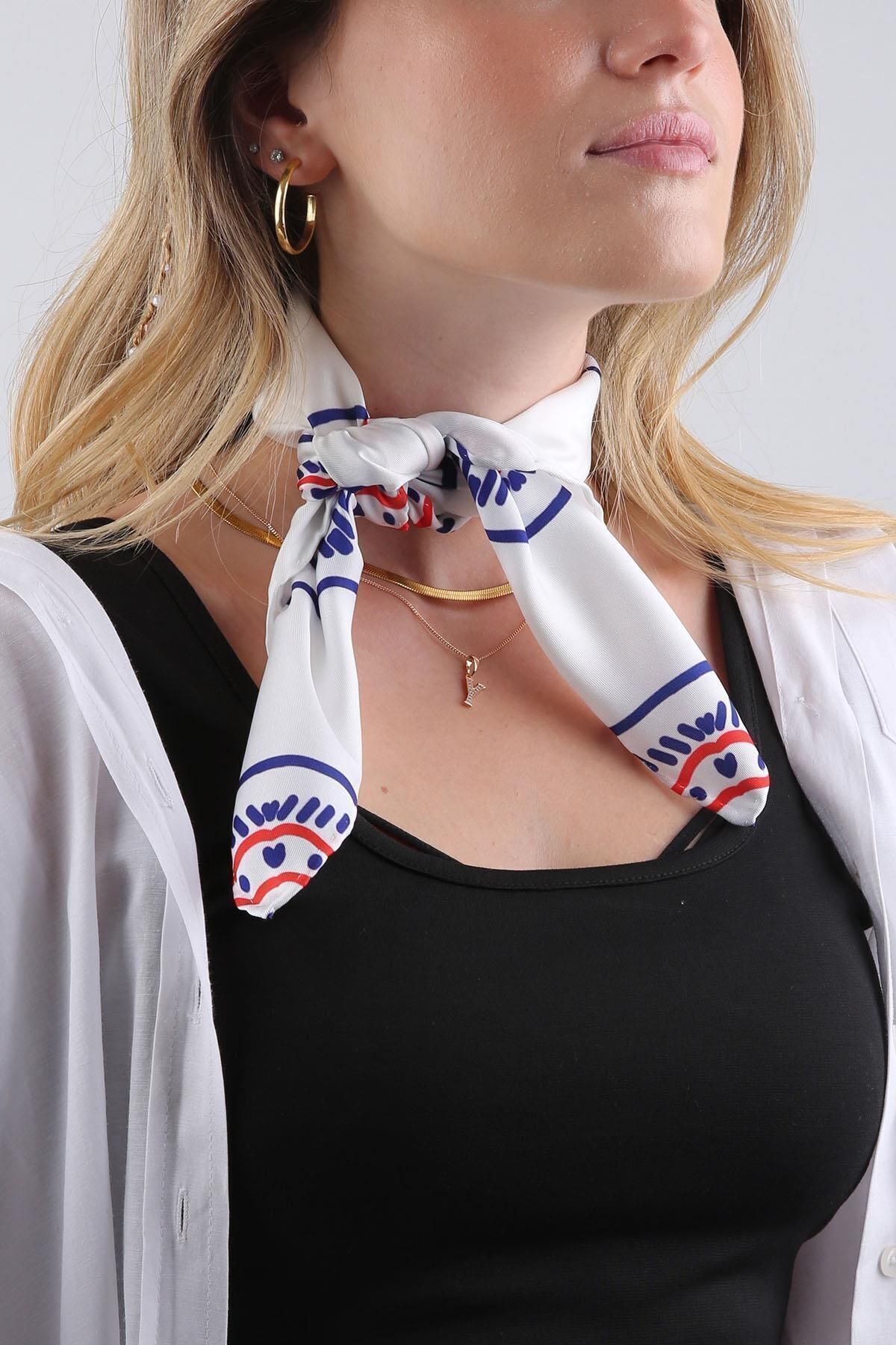خرید اینترنتی روسری طرحدار سفید طرحدار، باندانا، ۵۵x۵۵ سانتیمتر، KDNF09 برند La Pescara اورجینال از Kravatkolik نمایندگی ترکیه