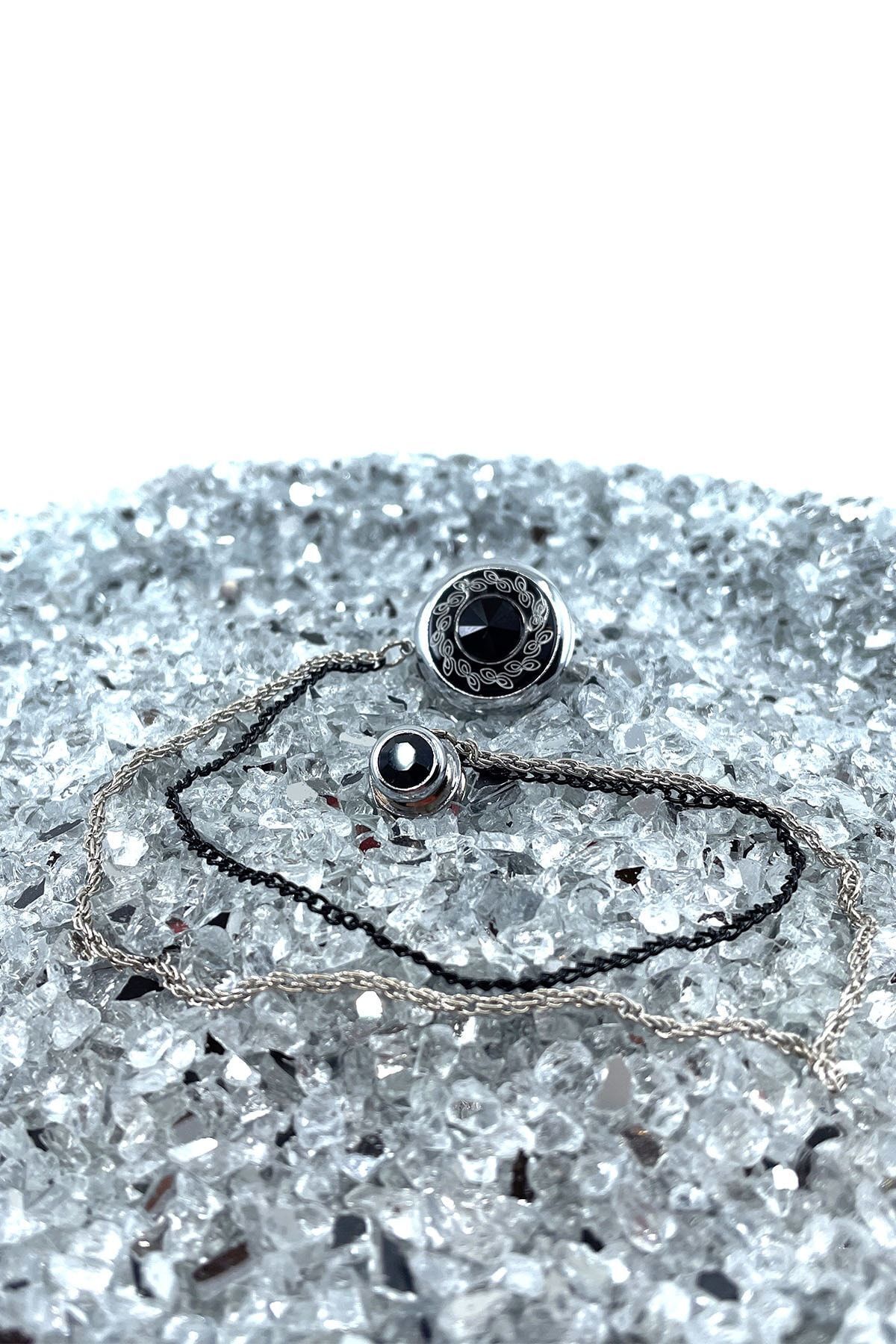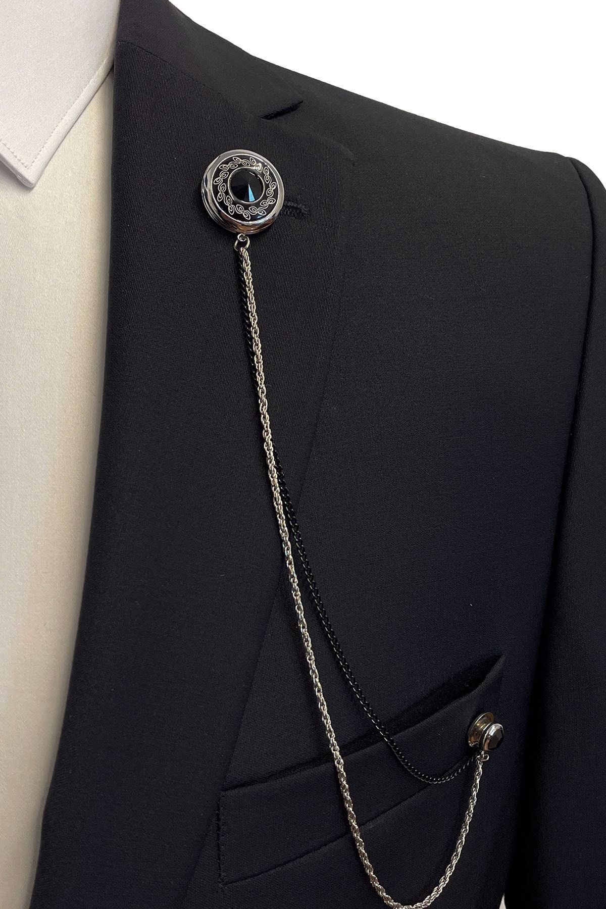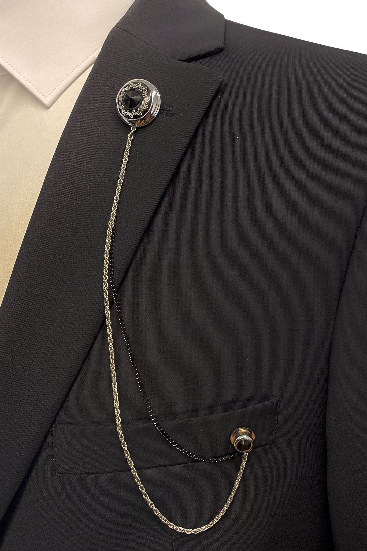 سنجاق یقه زنجیری سنگی مشکی YI129 مردانه | La Pescara YI129