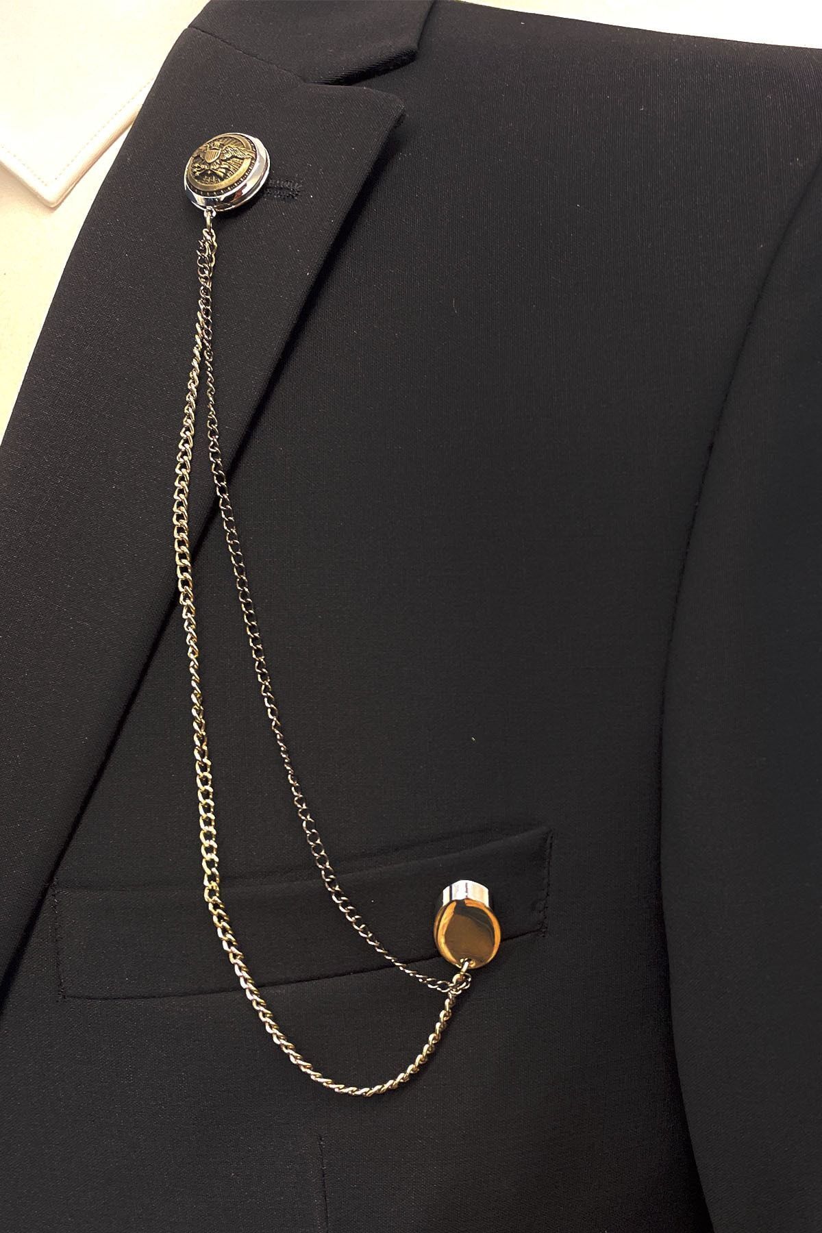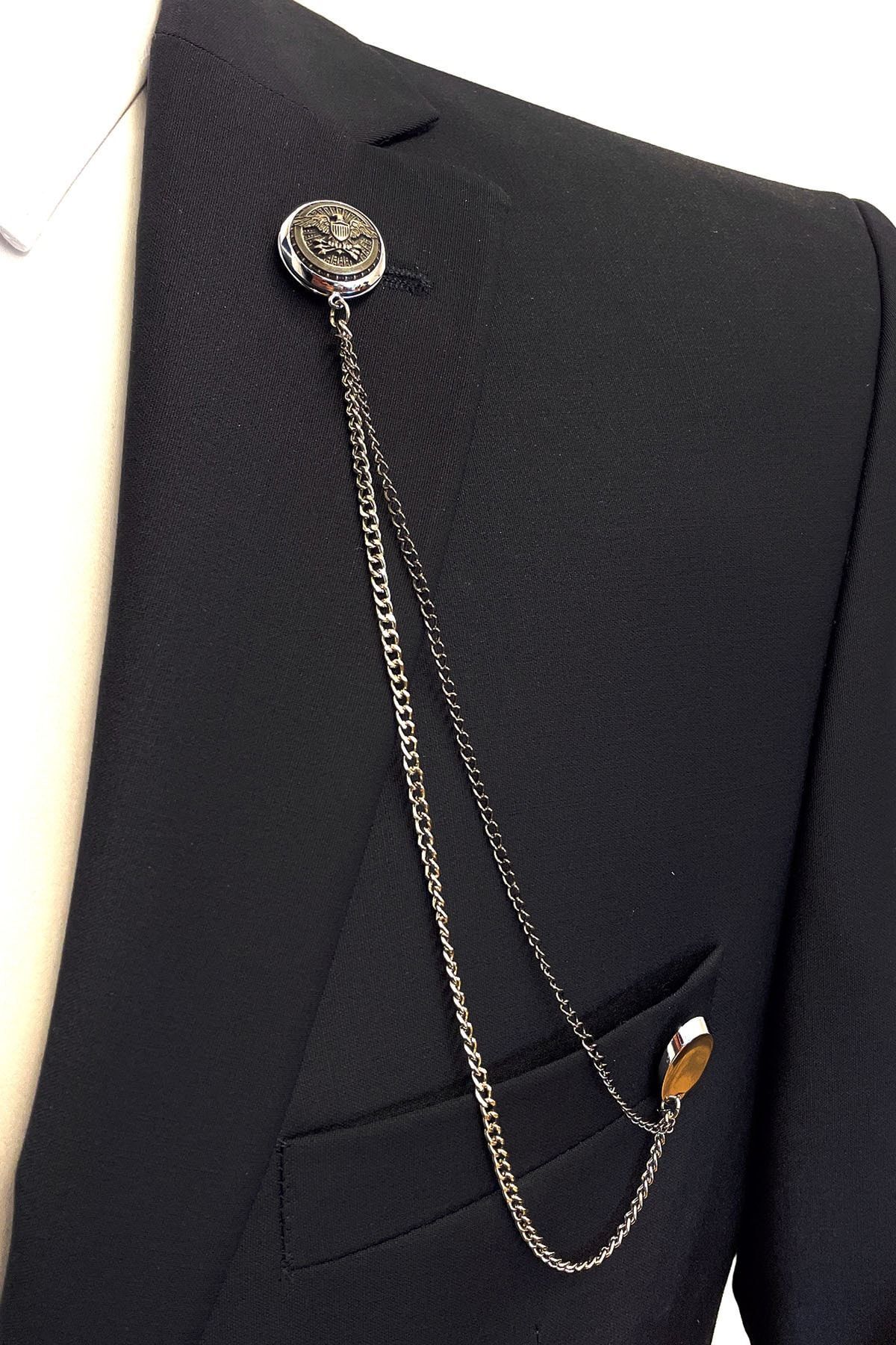 سنجاق یقه زنجیری تزیین شده با سنگ YI136 مردانه | La Pescara YI136