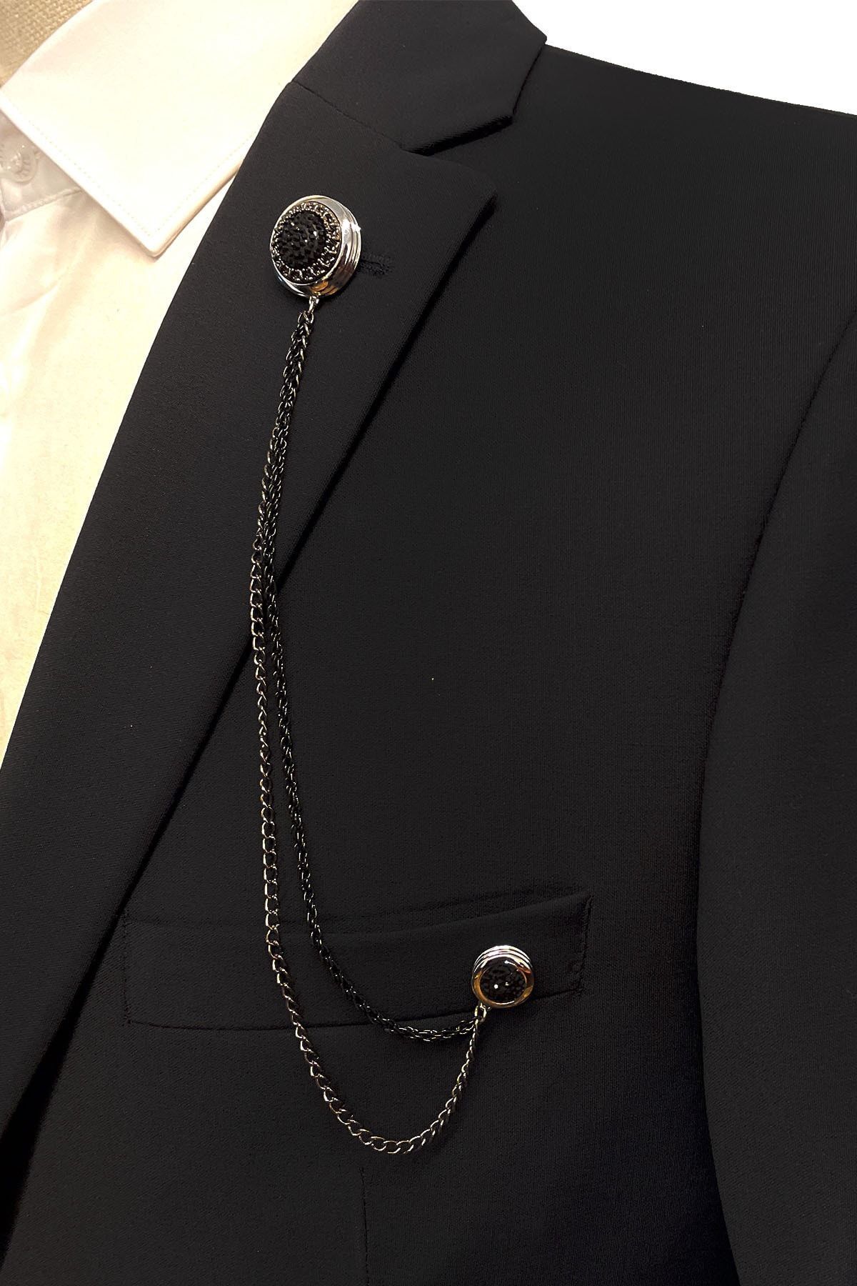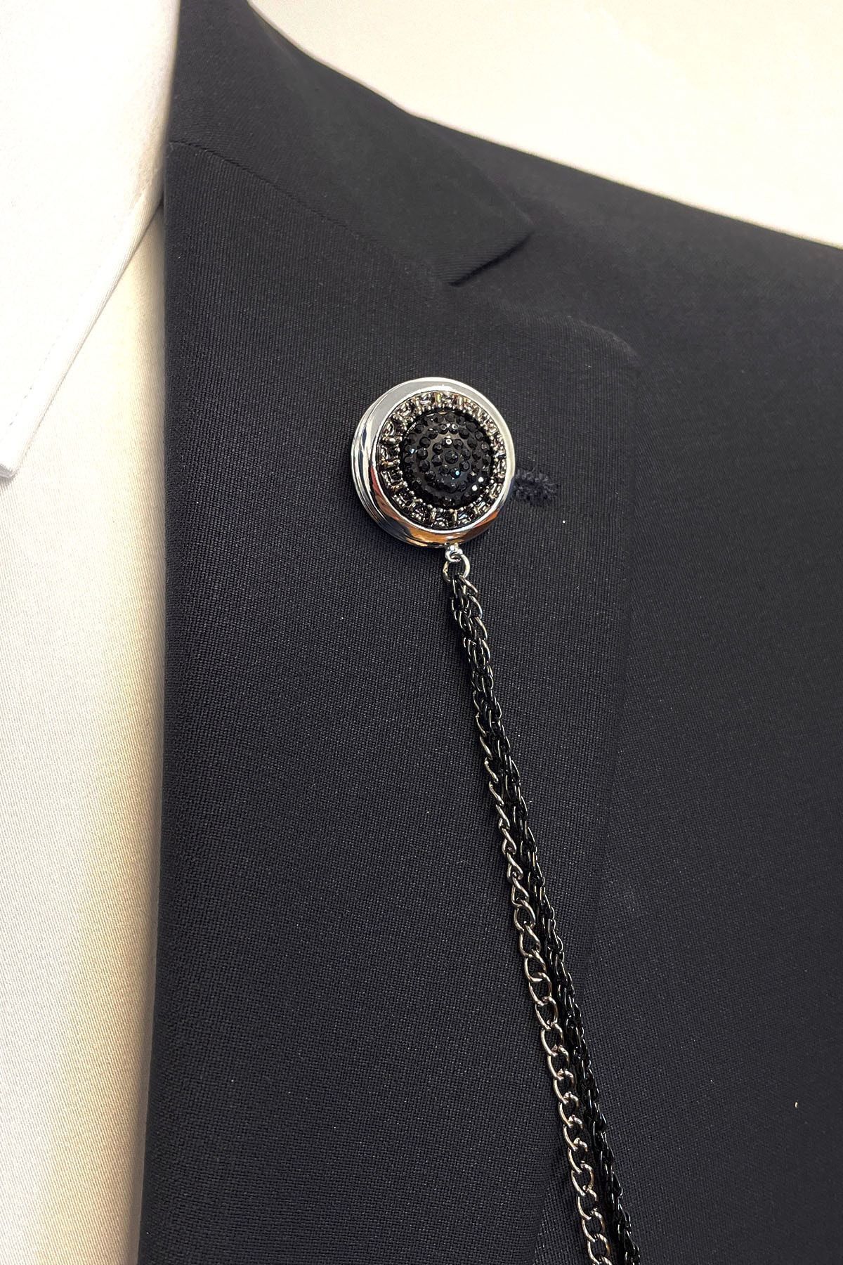 سنجاق سینه یقهای تزیین شده با زنجیر و سنگ YI91 مردانه راسته | La Pescara YI91
