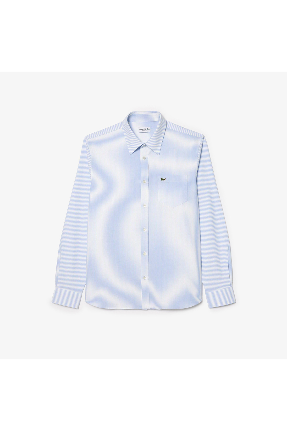 خرید اینترنتی پیراهن مردانه راه راه معمولی طرح دار نخی ارگانیک آبی روشن برند لاگوست Lacoste اورجینال از Lacoste نمایندگی ترکیه