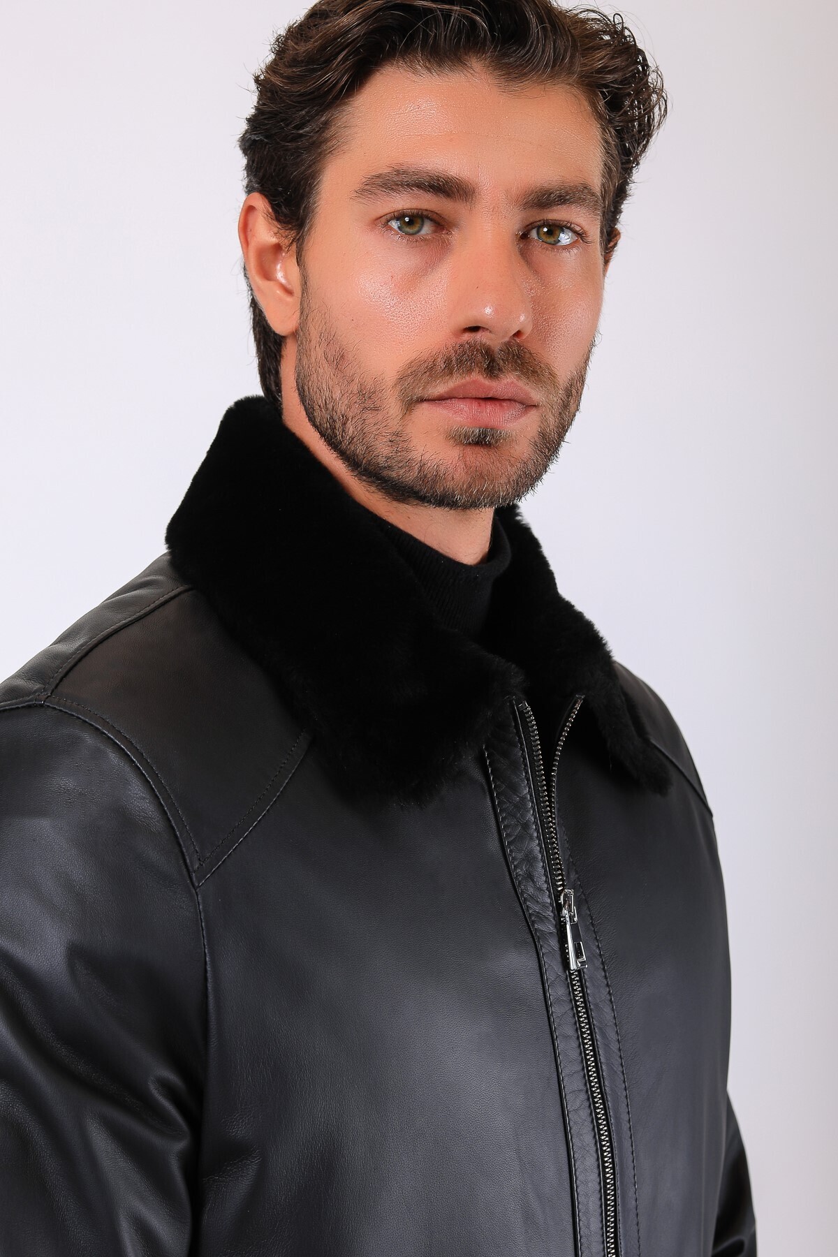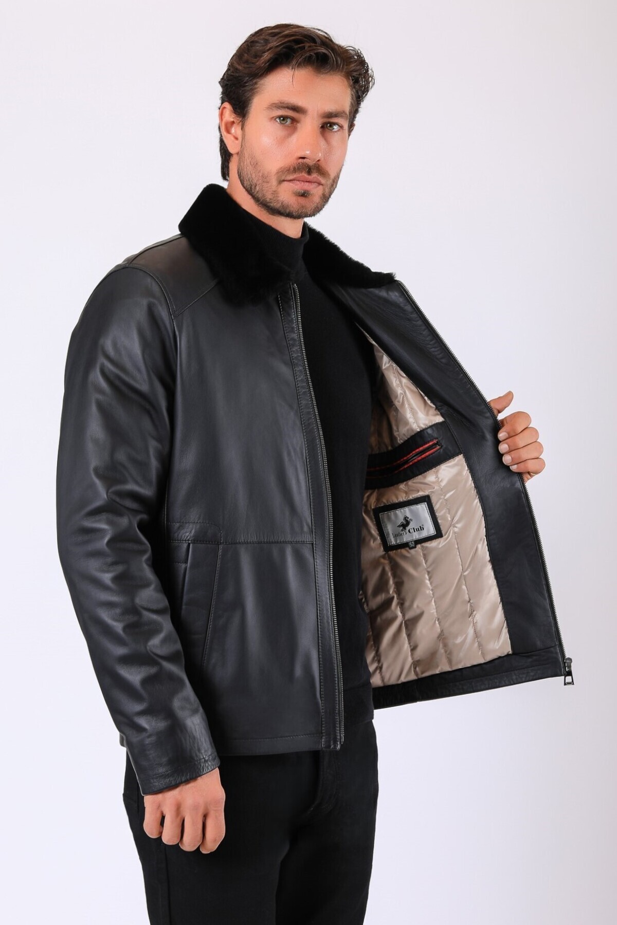 خرید اینترنتی کاپشن چرم اصل مشکی رابرت با اکسسوریهای خز برند لذرکلاب Leather Club اورجینال از LC Leather Club نمایندگی ترکیه