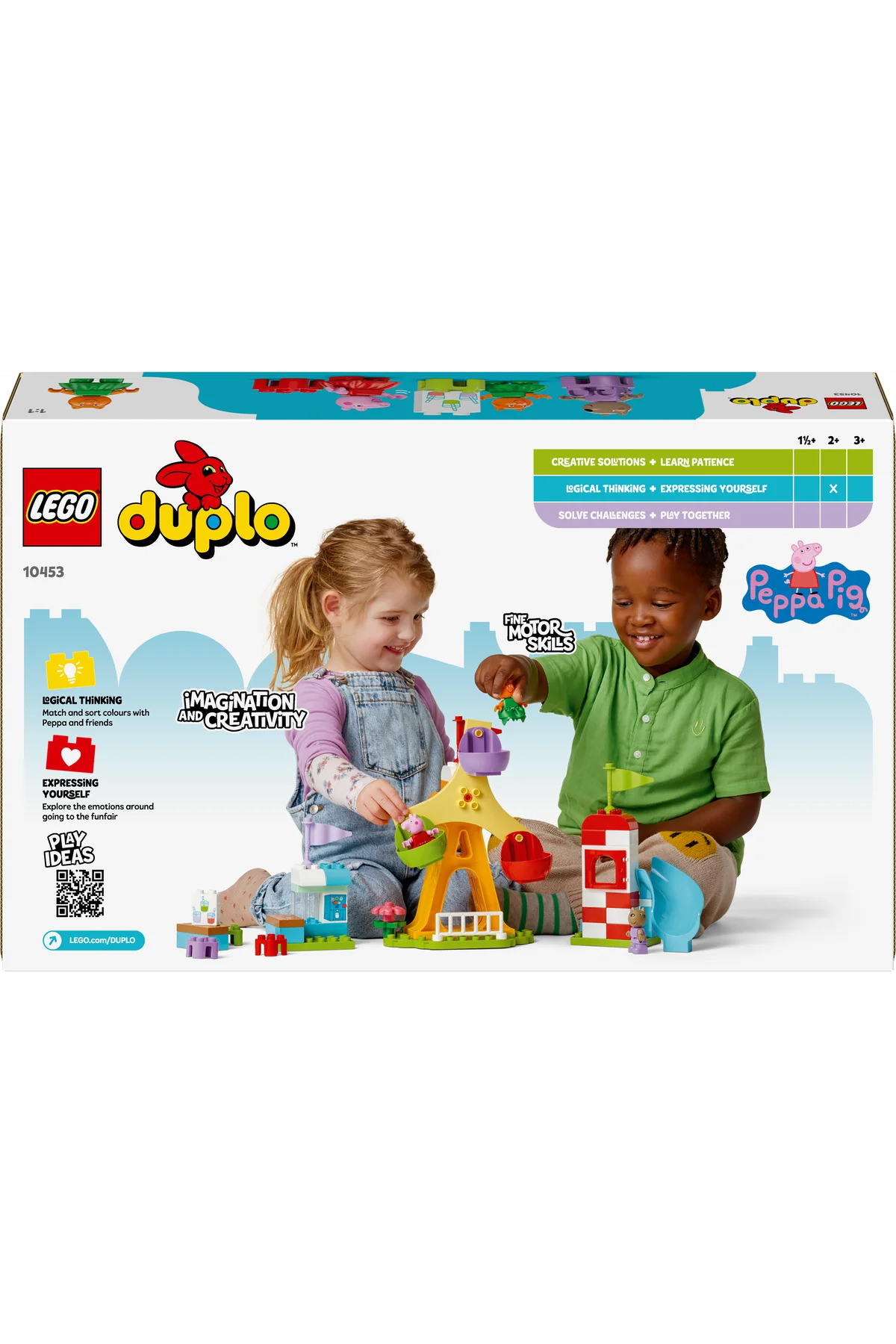 با اسباببازی لگو دوپلو پپا پیگ (10453) برای کودکان نوپا، زمان بازی را با سرگرمی پویا و ماجراجویی پر کنید. دختران و پسران پیشدبستانی 2 سال به بالا، تصور میکنند که در یک شهربازی با شخصیتهای اسباببازی آشنا از مجموعه مورد علاقهشان بازی میکنند. آنها از تماشای چرخش شخصیتهای پپا پیگ، کندی کت و دنی داگ در حالی که چرخ و فلک چرخان این مجموعه بازی پیشدبستانی را هل میدهند، لذت خواهند برد. سپس میتوانند به نوبت از سرسره اسباببازی پایین بیایند. این مجموعه ساختمانسازی رنگارنگ به کودکان کمک میکند تا مهارتهای مرتبسازی رنگ و تفکر منطقی را توسعه دهند، زیرا لباسهای شخصیتهای اسباببازی را با گوندولاهای چرخ و فلک یا فنجانها و صندلیهای آبمیوهفروشی ست میکنند. مهارتهای حرکتی ظریف با قرار دادن شخصیتها در صندلیهای اسباببازی توسعه مییابد. این هدیه باکیفیت برای کودکان پیشدبستانی، کودکان را تشویق میکند تا در مورد احساساتی که برای اولین بار تجربه میکنند صحبت کنند. این اسباببازی کودکان را تشویق میکند تا اعتماد به نفس خود را برای امتحان کردن چیزهای جدید افزایش دهند و از طریق بازی تخیلی یاد بگیرند که اشکالی ندارد تصمیم بگیرند کاری را انجام ندهند.