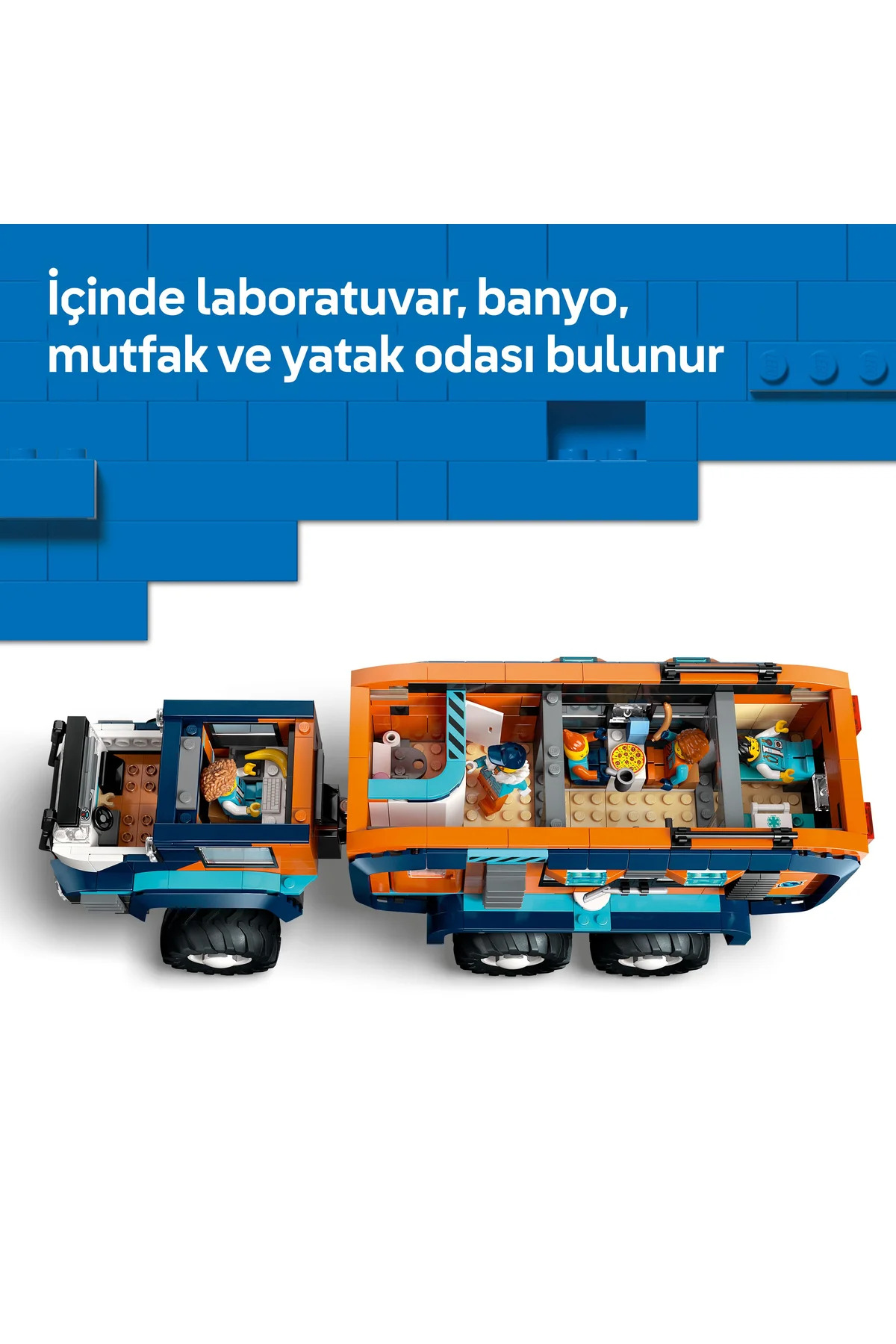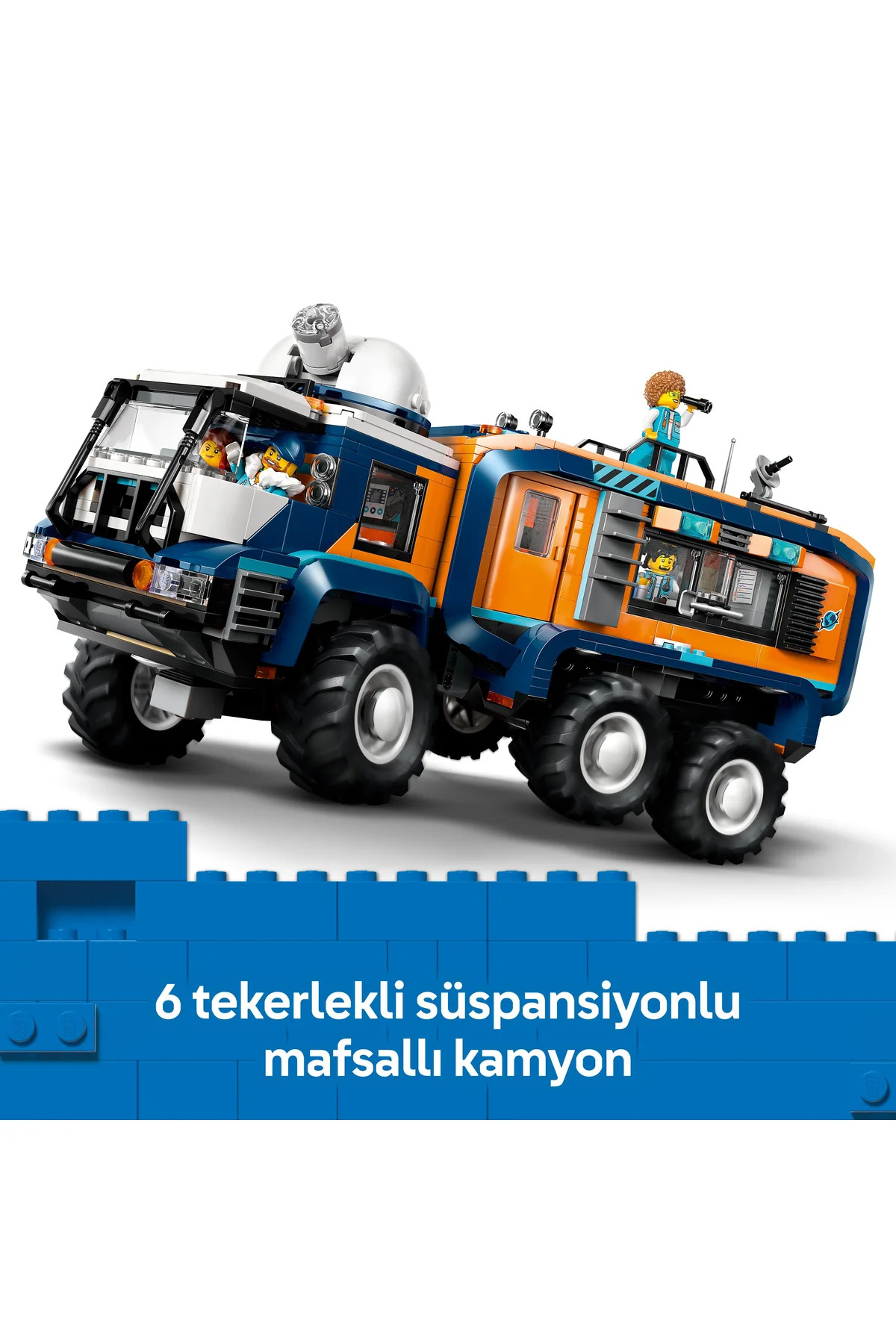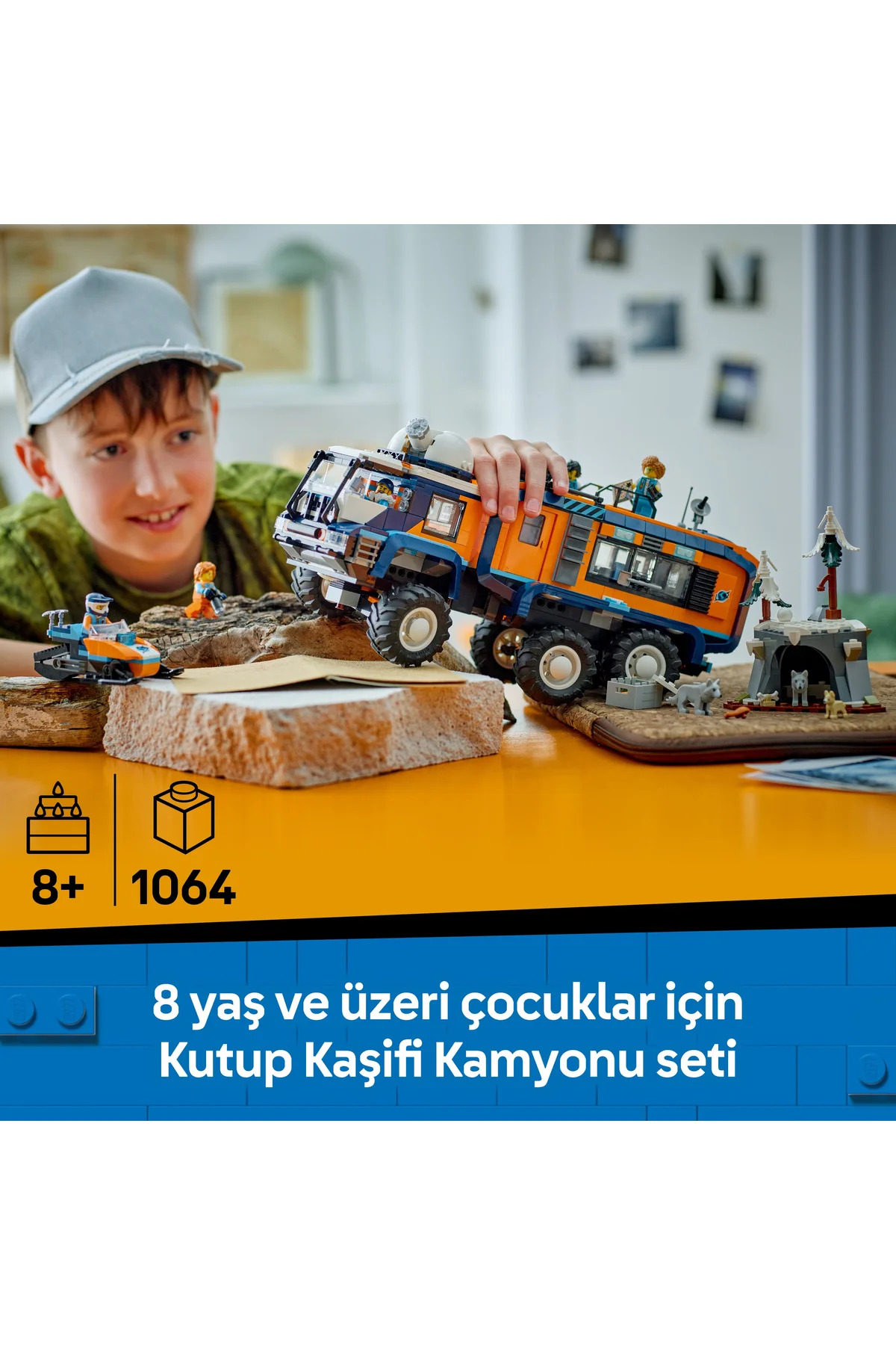 با مجموعه کامیون آزمایشگاهی کاوشگر قطب شمال LEGO® City، یک ماجراجویی الهامبخش برای کودکان ۸ سال به بالا ارائه دهید. این مجموعه با جزئیات واقعگرایانه، از جمله یک کامیون اسباببازی مفصلی، سیستم تعلیق ۶ چرخ، لاستیکهای آجدار عمیق و یک رصدخانه چرخان، تجهیز شده است. در داخل، کامیون اسباببازی دارای کابین راننده و آزمایشگاه و همچنین فضاهای زندگی کاملاً مجهز از جمله آشپزخانه، حمام و اتاق خواب است. همچنین دارای یک اسنوموبیل اسباببازی، یک محیط غار قطب شمال، ۵ مینیفیگور کاوشگر، یک توله سگ و ۳ فیگور اسباببازی گرگ قطب شمال است.