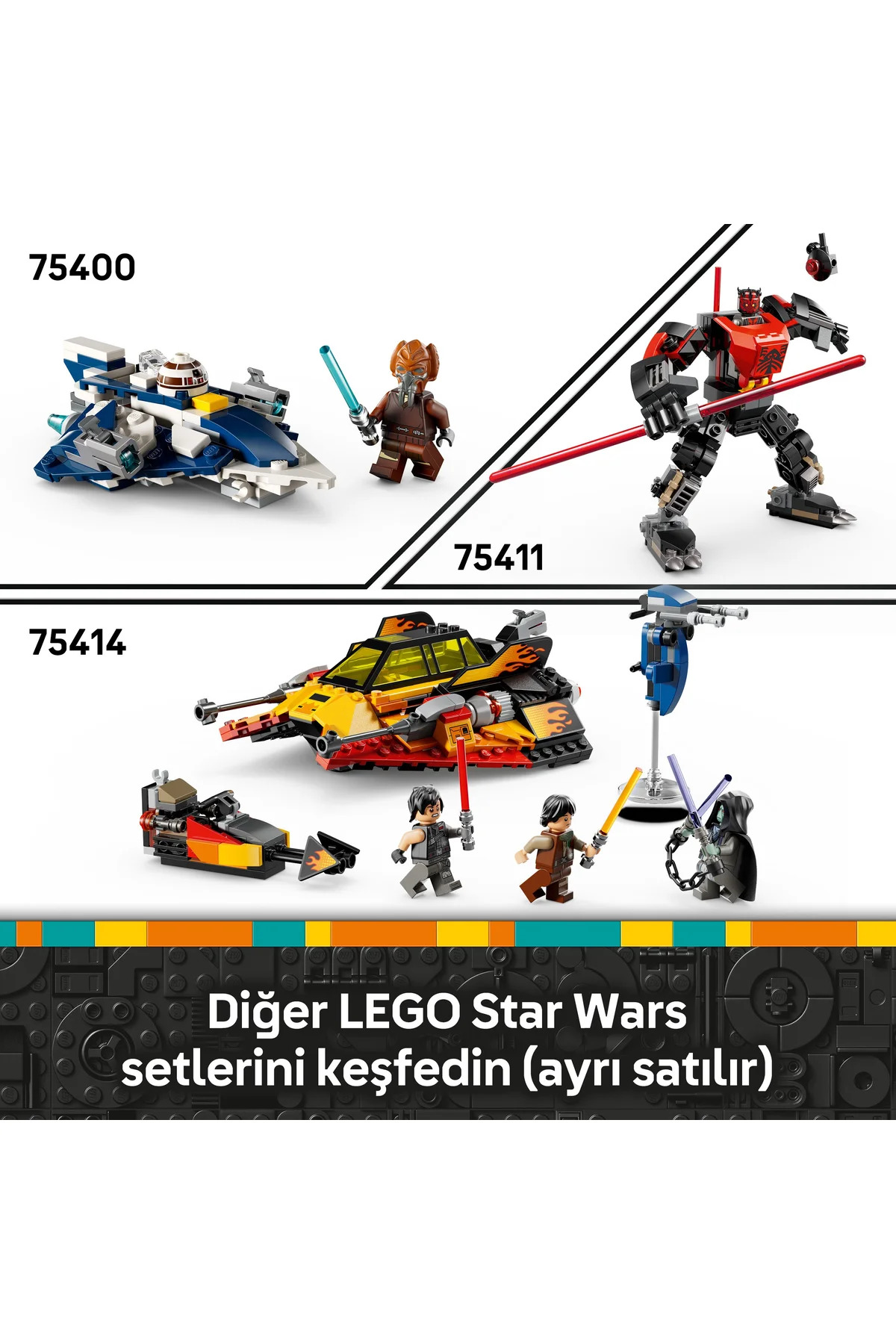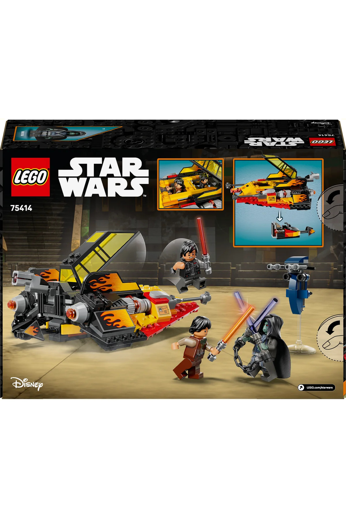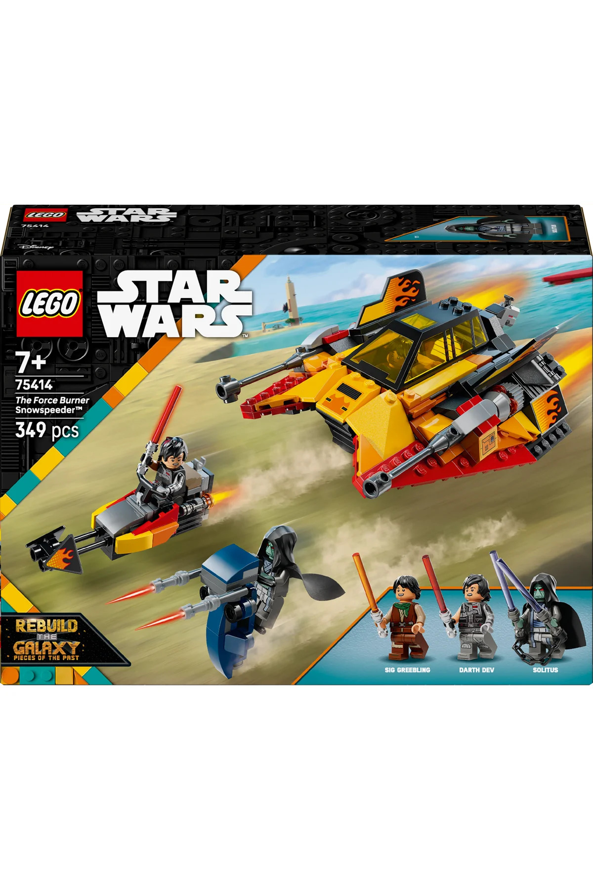 با اسنوموبیل فورس برنر (75414) وارد دنیای پر از اکشن جنگ ستارگان شوید. این مجموعه ساخت و ساز لگو جنگ ستارگان که برای کودکان 7 سال به بالا طراحی شده است، دارای یک نسخه قابل ساخت از اسنوموبیل چشم‌نوازی است که در فصل 2 بازسازی کهکشان دیده شد. این وسیله نقلیه مملو از جزئیات است، از جمله کابین خلبان دوگانه بازشونده، الگوهای شعله‌های چشم‌نواز، یک تیرانداز گل‌میخی در عقب و یک اسکوتر اسپیدر قابل جدا شدن. کافیست روی صندلی یا سر مینی‌فیگور راننده فشار دهید تا اسپیدر آزاد شود. این مجموعه شامل مینی‌فیگورهای جدید برای اولین بار از لگو جنگ ستارگان، سیگ گریبلینگ، دارث دو و سولیتوس است. هر شخصیت شمشیر نوری منحصر به فرد خود را دارد، در حالی که شمشیرهای نوری زنجیری دوگانه سولیتوس و وسیله نقلیه STAP قابل ساخت، هیجان بیشتری به نقش‌آفرینی می‌افزایند. این مجموعه وسیله نقلیه پر از اکشن، با مدل‌های کلکسیونی و عملکردهای قابل بازی خود، یک تجربه ساخت و ساز فراموش‌نشدنی را برای طرفداران جنگ ستارگان ارائه می‌دهد. این مجموعه در مجموع شامل 349 قطعه است.